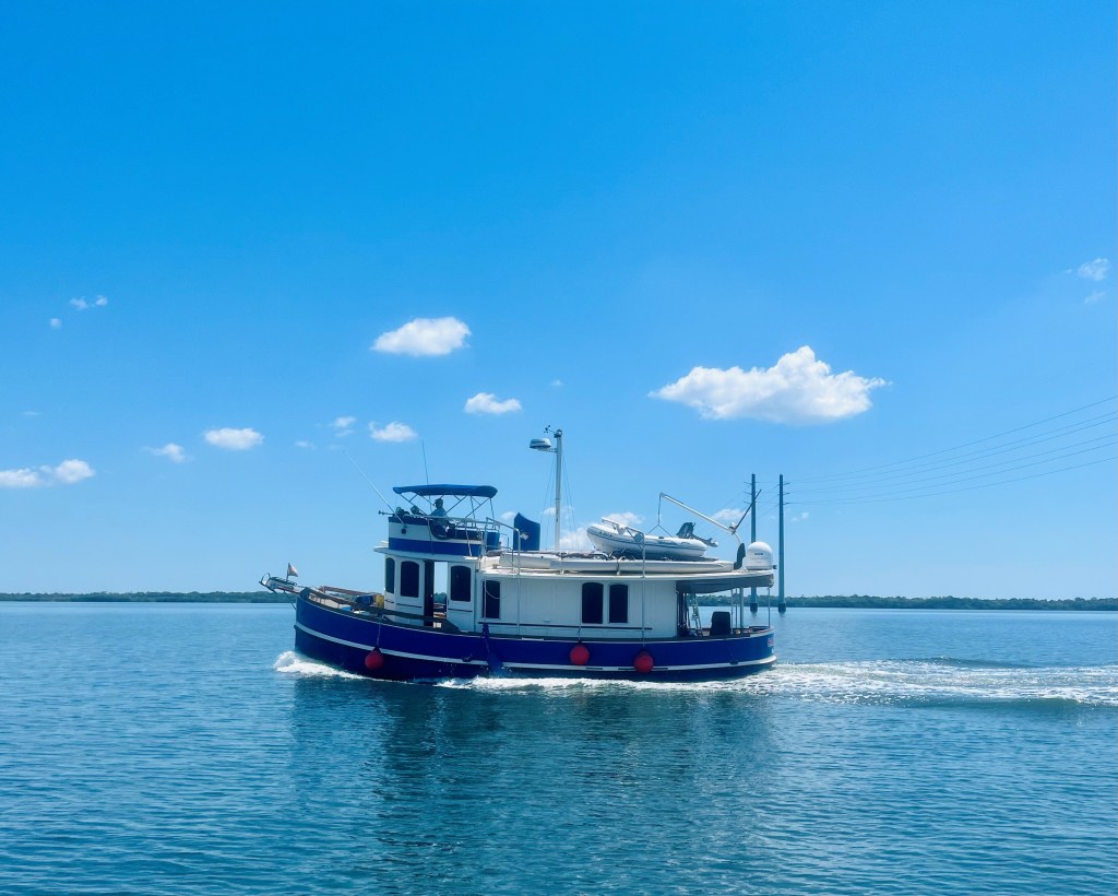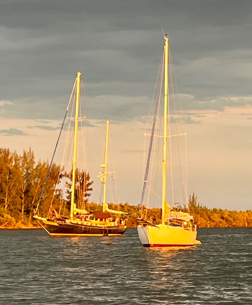We anchored in a quiet cove in New Smyrna, surrounded by sailboats. Woke up Wednesday morning to a welcoming sound – a dog barking! Funny the things you can appreciate in the quiet solitude.