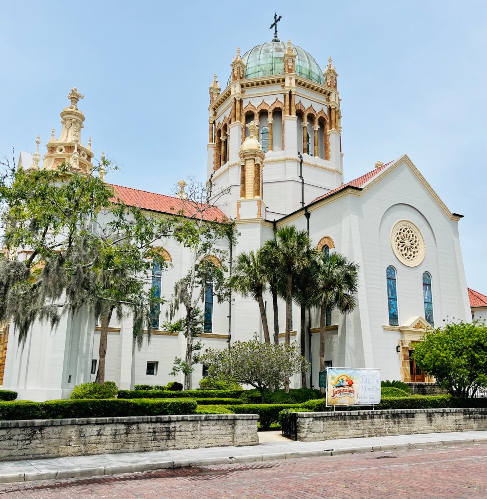 The Cathedral Basilica of St. Augustine was designated a U.S. National Historic Landmark in 1970. Its congregation, established in 1565, is the oldest Christian congregation in the contiguous United States. The Cathedral will be featured in a separate blog. We want to recognize and pay tribute to all the Catholic churches we visit along the Loop.