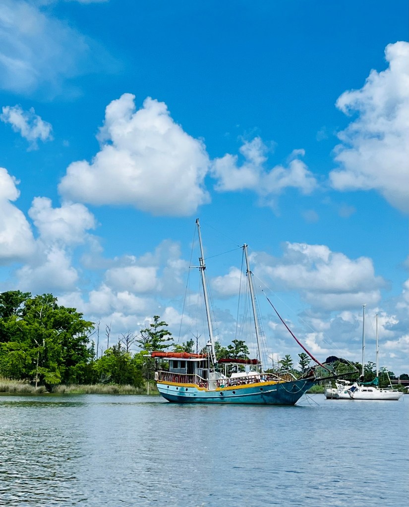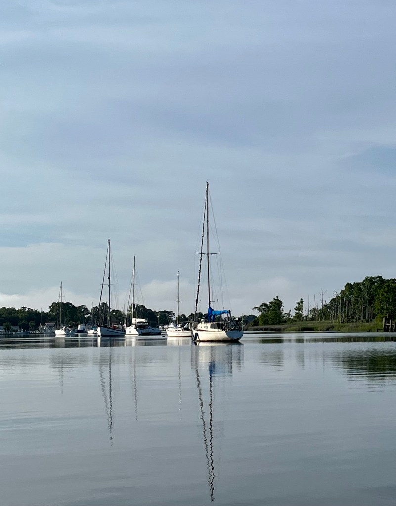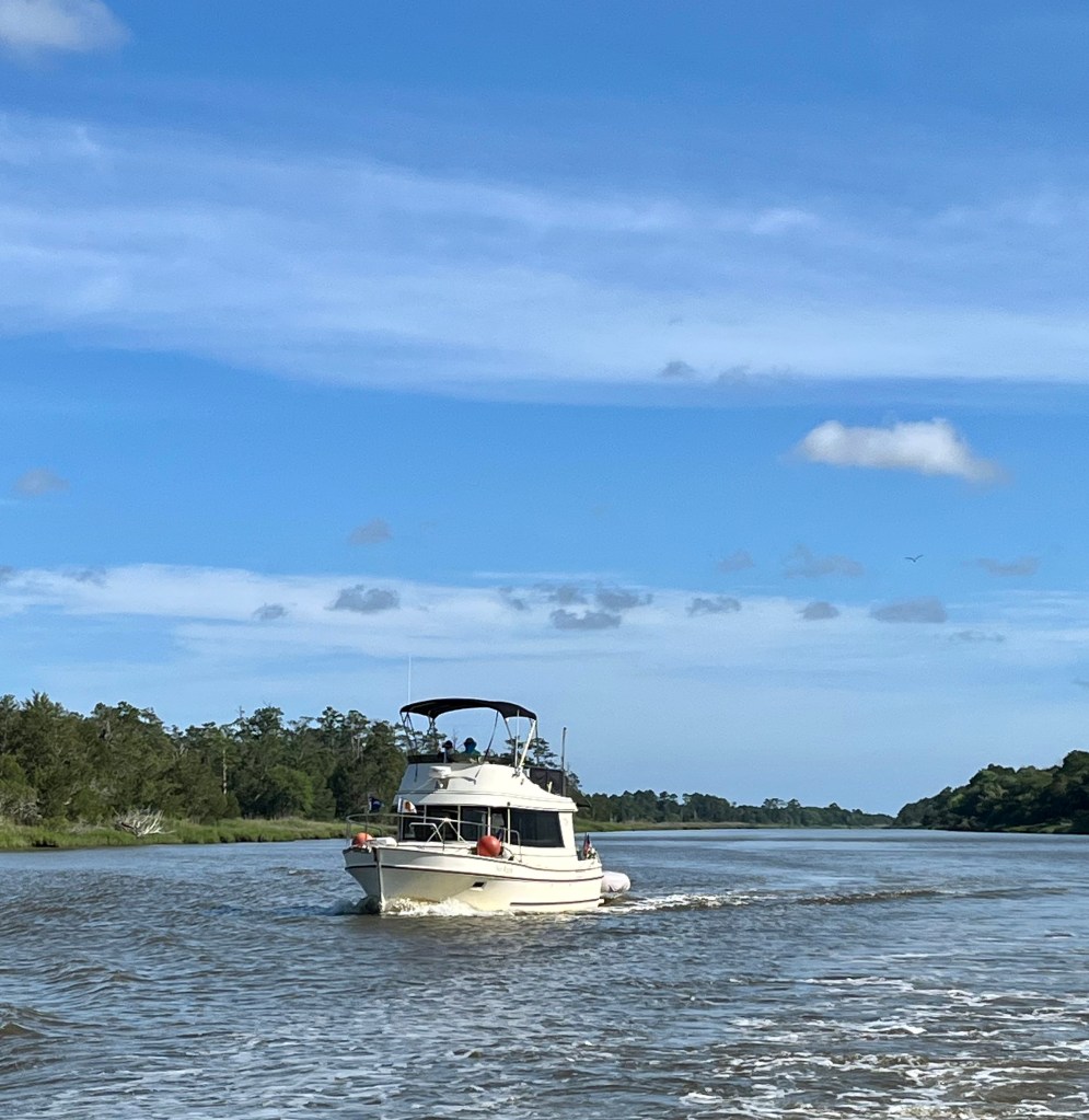 This was a long day for Captain Pat. We followed a buddy boat – fellow loopers we met at the marina in Charleston. Mitch and Anne are sailing the Loop in their Camano Trawler – “No Rush” – something we need to abide by! We both anchored out for the evening and agreed to meet for breakfast the next morning and take a quick look around Georgetown.