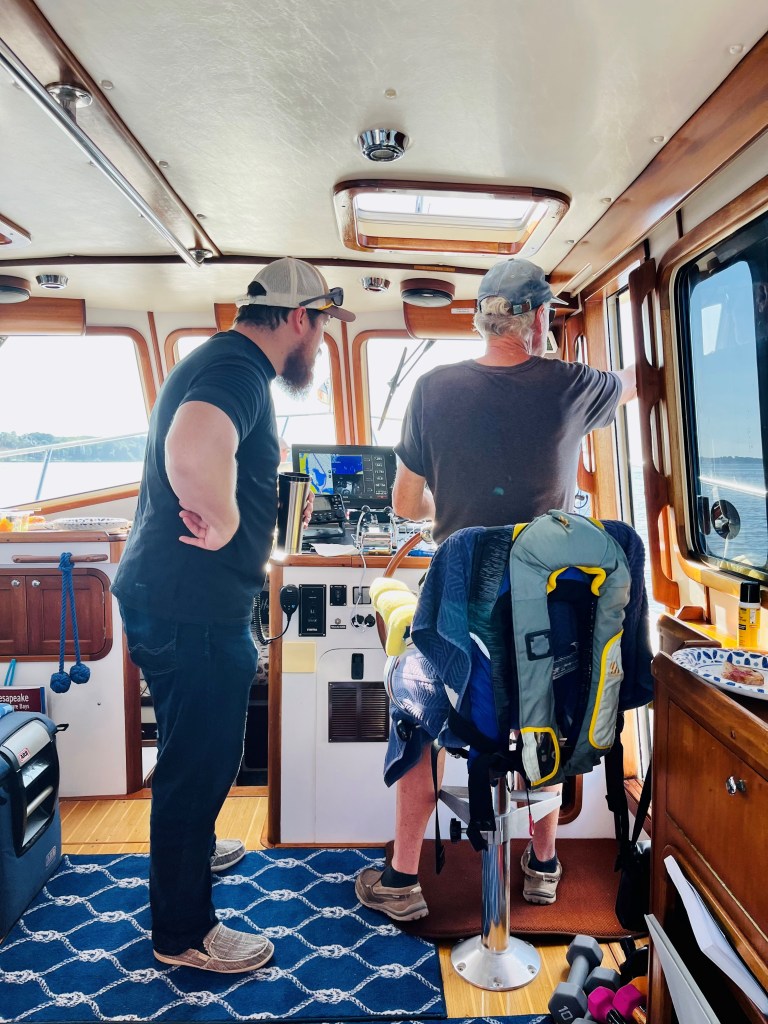 We went for provisions at the local WalMart (our favorite place!) and made a stop at the bank and West Marine. The best was seeing Colleen’s home in Lexington Park and meeting her two greyhounds! And we left with fresh lettuce from her garden. Special thanks to Colleen, Harold and Lucas for letting us visit and helping us out!