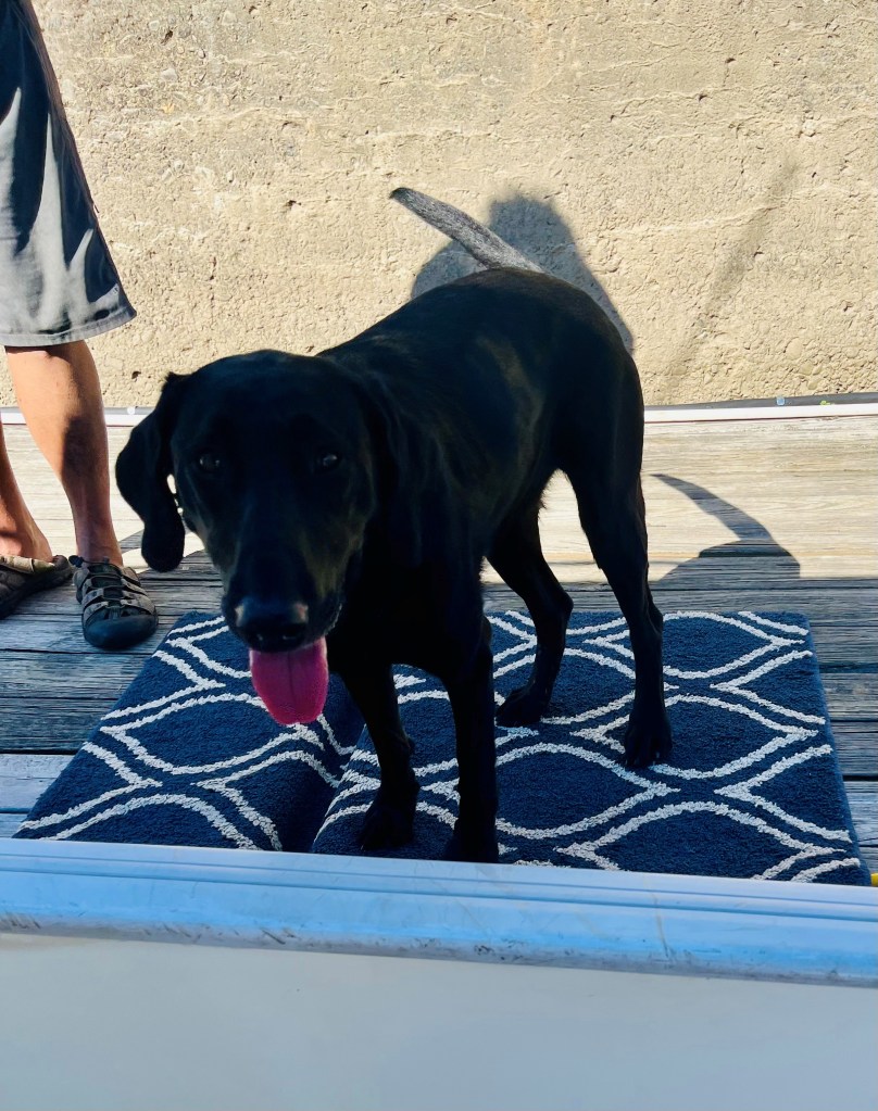 Tom on Dancing Bear docked behind us. So his dog Ripple visited us on Sunshine!