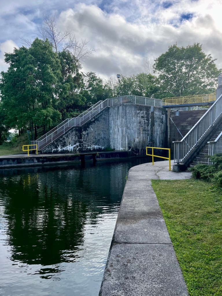 We then just travelled with Dancing Bear through the other locks that day. We ended up going from Lock 8 (Percy Reach) to Lock 18 (Hastings.) That is 10 locks, making for a very long day. It seemed like we finished one lock only to go into another one. And, yes, we did end up with that sailboat in another lock.