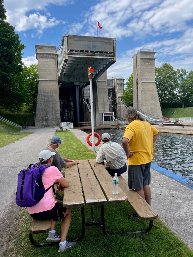 The previous evening, we – Pat, Anne, Mitch, Tom and me – walked to the Peterborough Lock to take photos. The lock is massive and quite the engineering marvel.
