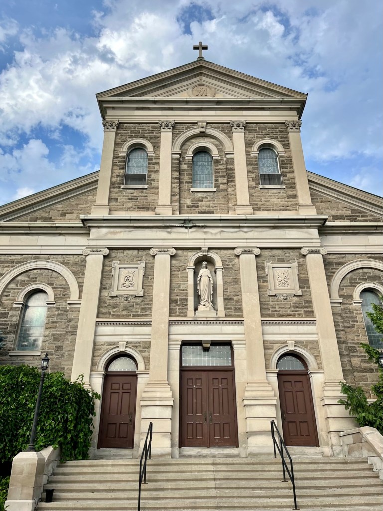Catholic Church we saw on our walk from dinner – Immaculate Conception. We met a woman and her niece at the Lock. They were visiting her daughter – a lockmaster there. Turns out three generations of the family attended this church and school!