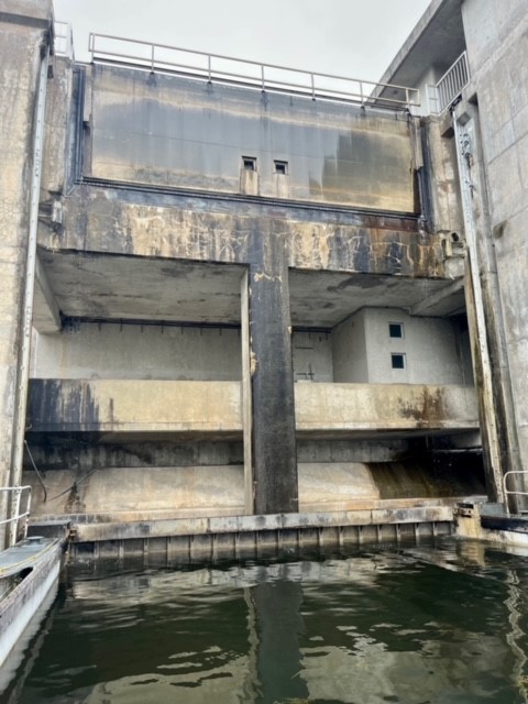 Kirkfield is the second highest hydraulic lift in the world. Peterborough is the highest. It is also the first down lock since Trenton. Because it is all “downstream” from here to Lake Huron, the buoys are reversed for the remainder of the canal.
