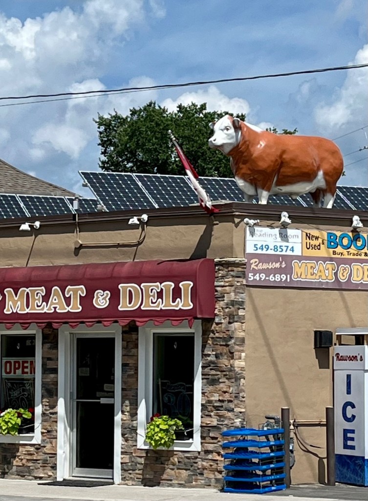 So thought of my Mom when I saw this cow atop a meat and deli.
