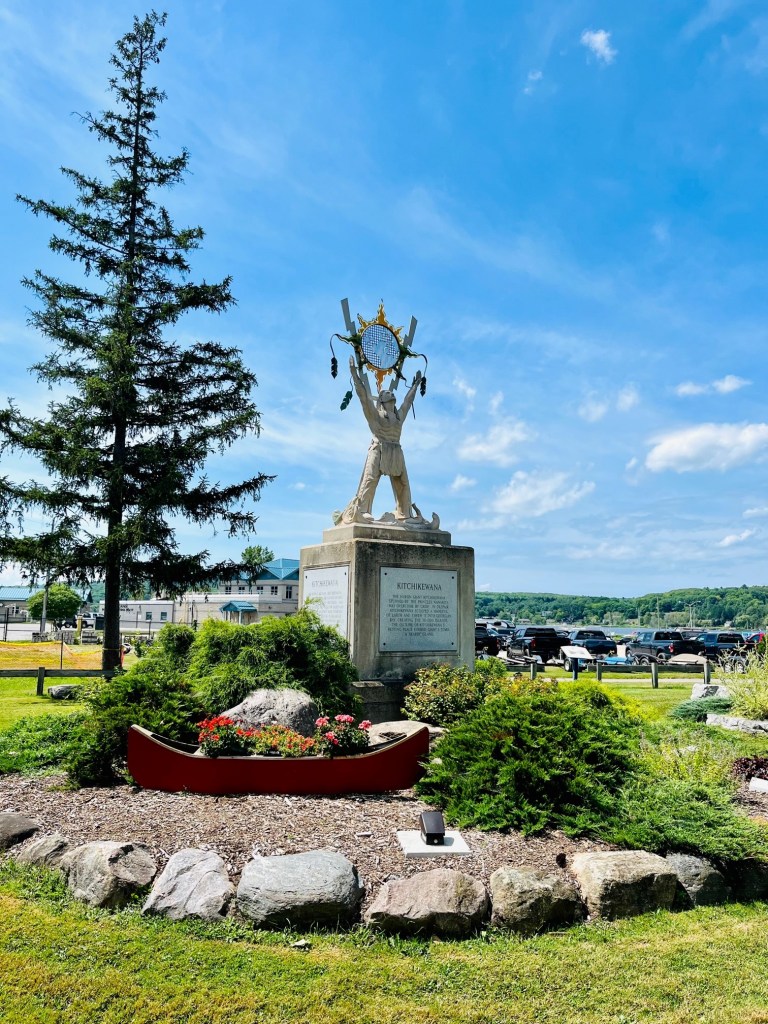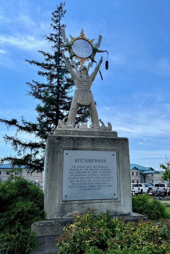 Just outside the town docks is this tribute to Kitchikewana. As the inscription reads, this Huron giant was spurned by Princess Wanakita.