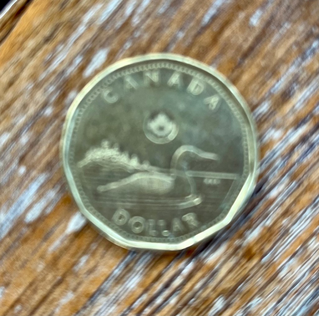A “loonie” is one Canadian dollar. It has a loon on it – hence the name.
