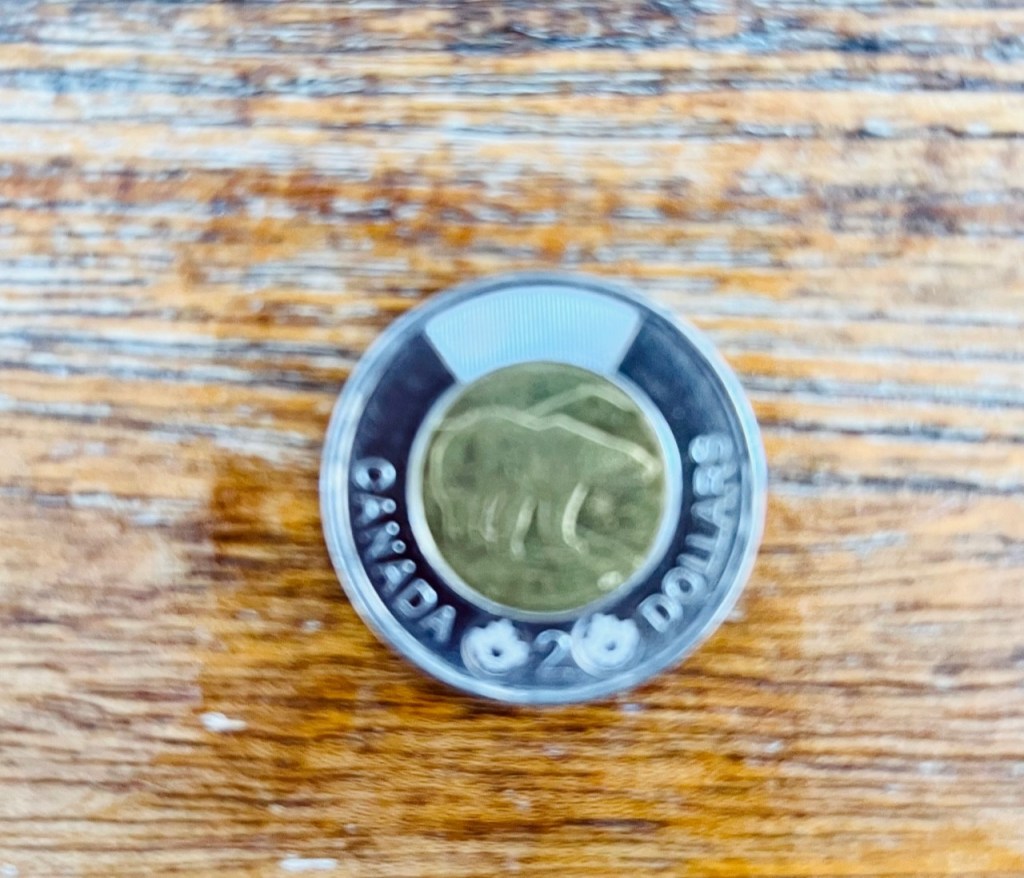 A toonie is a Canadian Two Dollar coin – hence the name “toonie.”