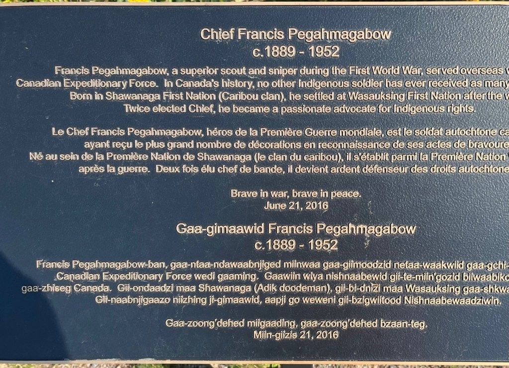 Tribute to Chief Francis Pegahmagabow, superior scout and sniper during First World War.