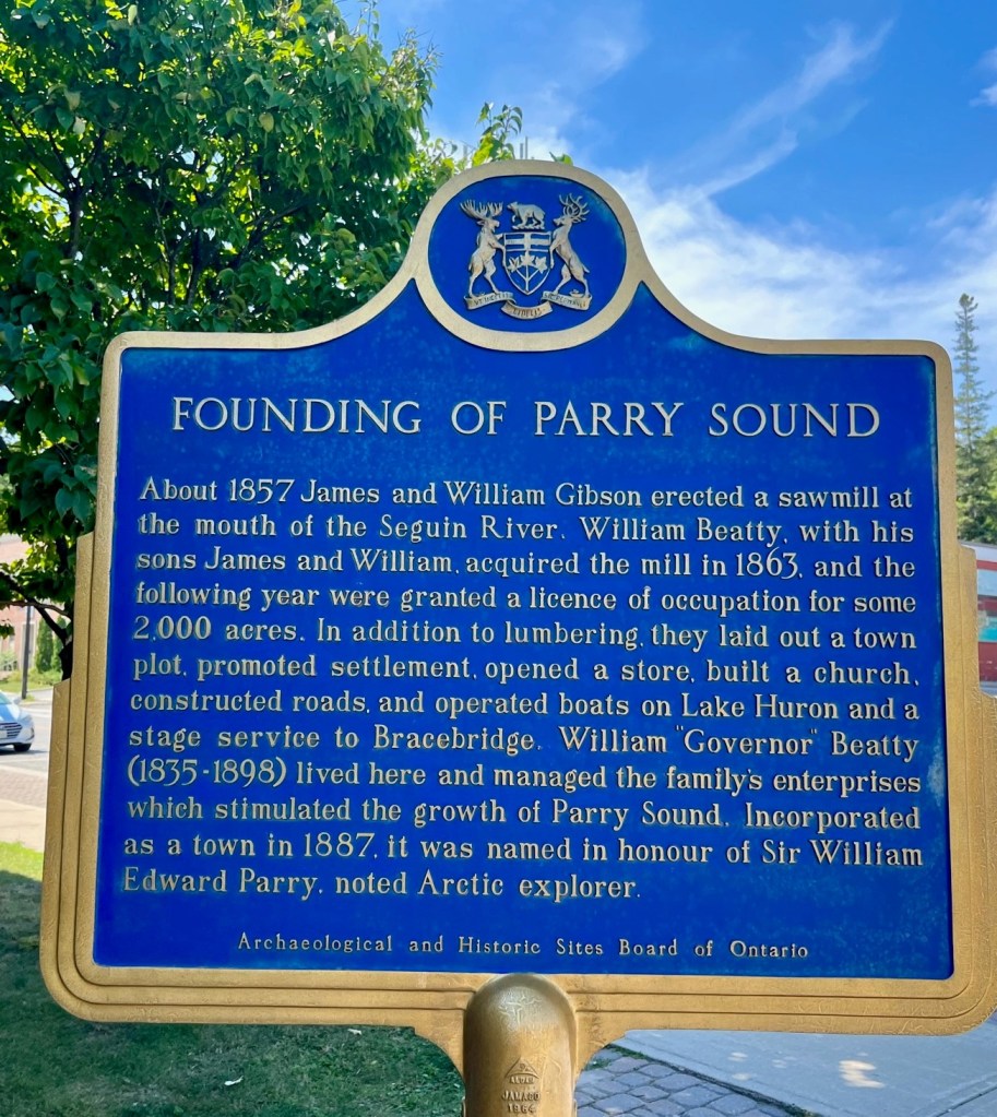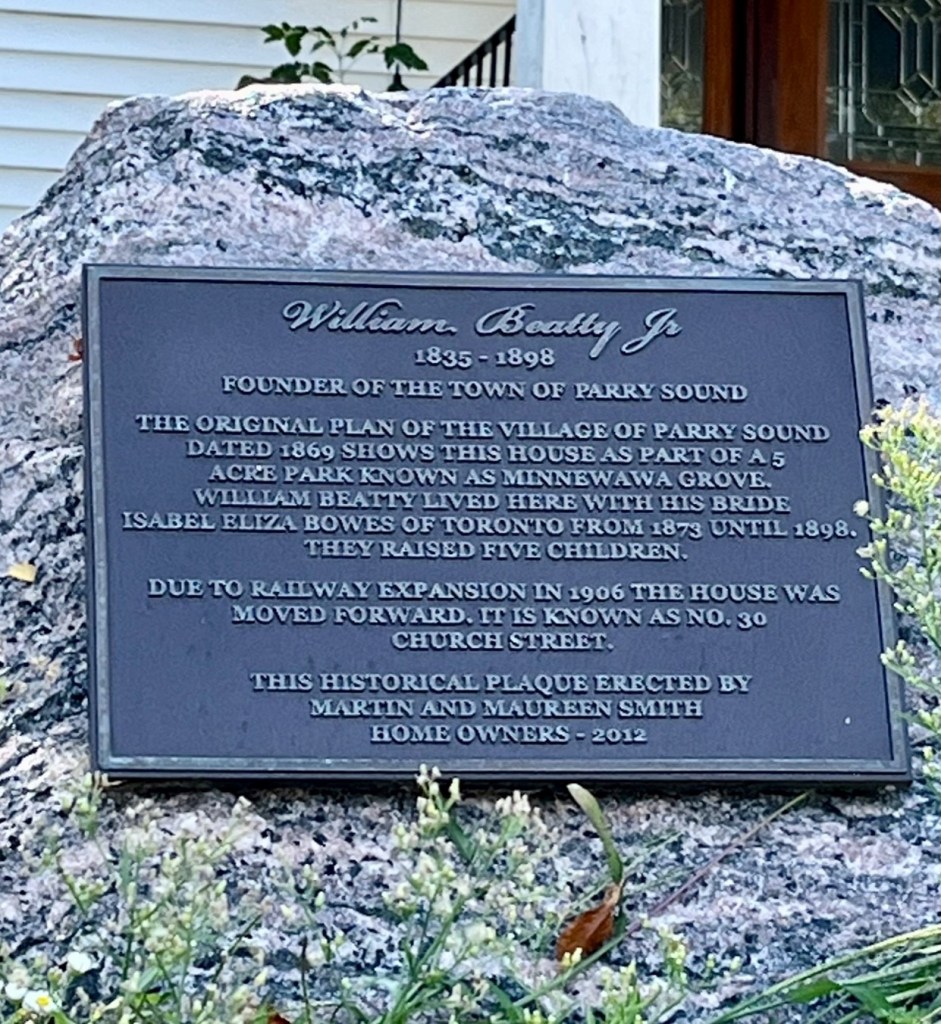 William “Governor” Beatty (1835-1898) lived here and managed the family’s enterprises, stimulating the growth of Parry Sound. Incorporate as a town in 1887, it was named in honor of Sir William Edward Parry, noted Artic explorer.