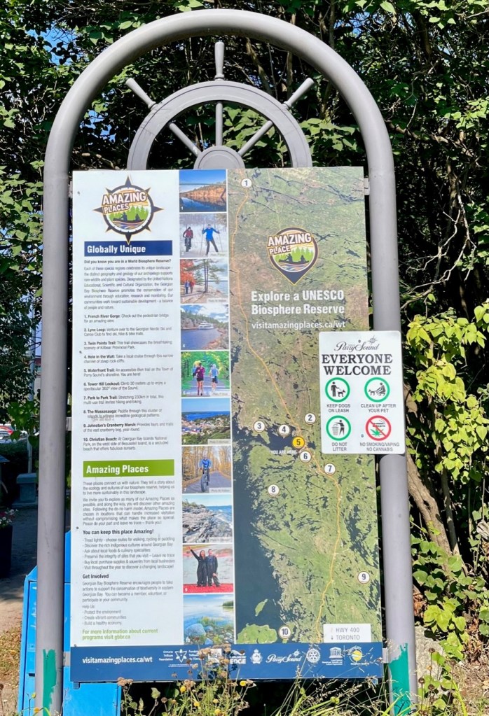 We spent a wonderful weekend in the town of Parry Sound, August 18 – 21. We try to explore and anchor out during the week as there is less boat traffic. Then we hit a marina for the weekend to restock provisions, do laundry, catch up on wi fi, and get our steps in. Friday and Saturday were record walking days for me. My Fitbit registered 19,000 steps on both days!