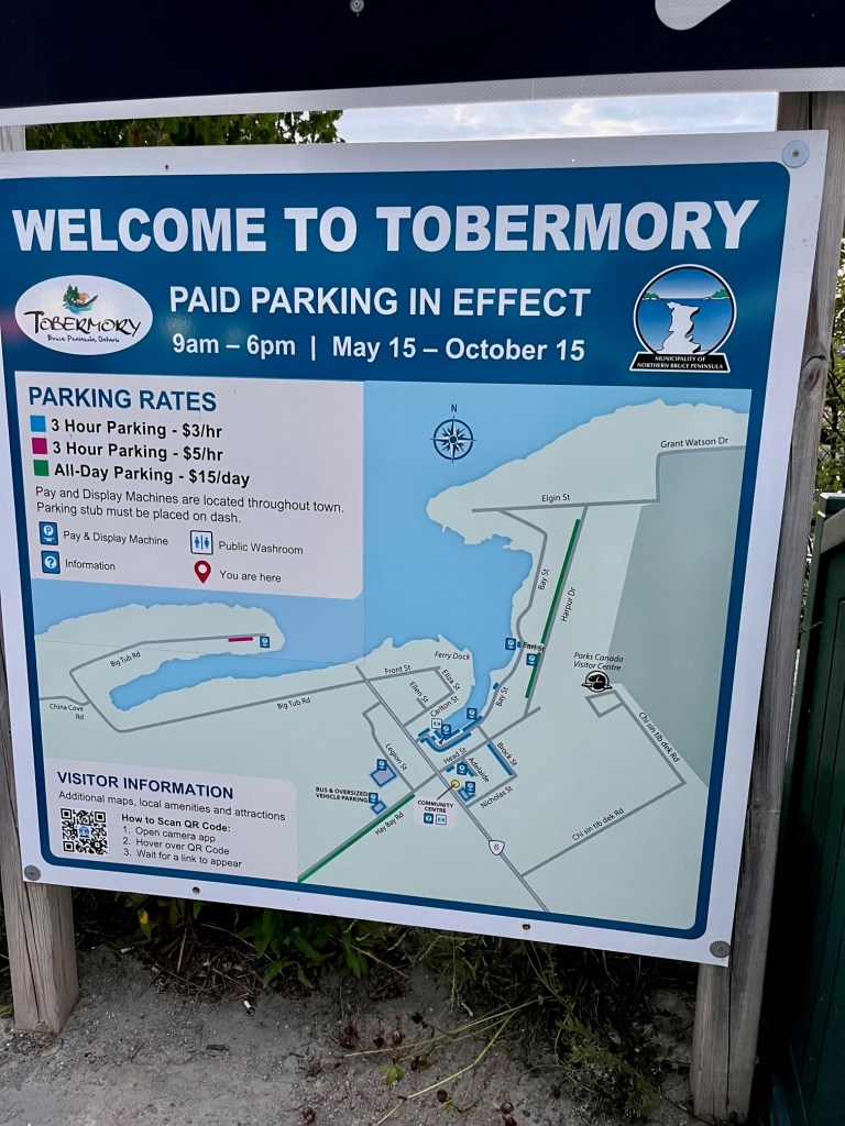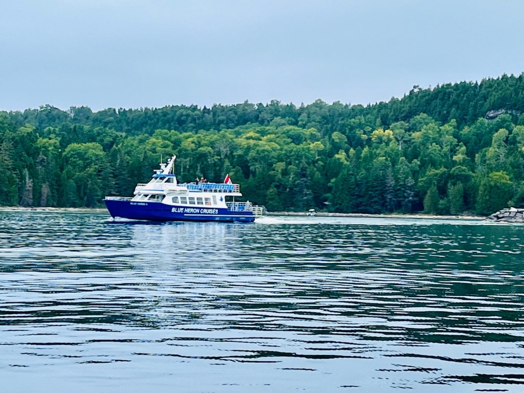 The Tobermory village – population 1,500 – is a tourist town attracting boaters, divers and hikers – as well as many people who drive here to take the Chi-Cheemaun (Ojibwa for “big canoe”), a vehicle and passenger ferry that runs to and from South Baymouth on Manitoulin Island. Since this is one of only two ways to take a vehicle to Manitoulin Island (the only other way is the single-lane swing bridge in Little Current mentioned earlier), it is common to see buses and transport trucks on this ferry as well as the usual tourist traffic.