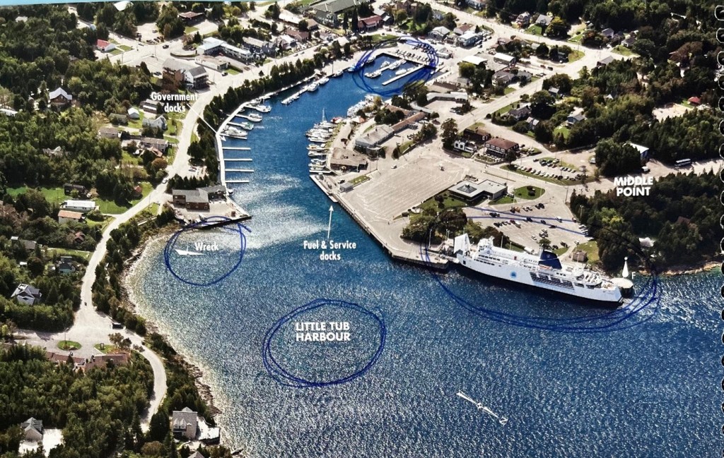 You can see the Chi-Cheemaun Ferry circled at bottom right.