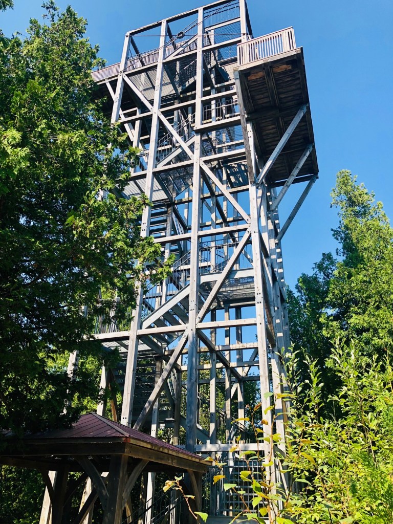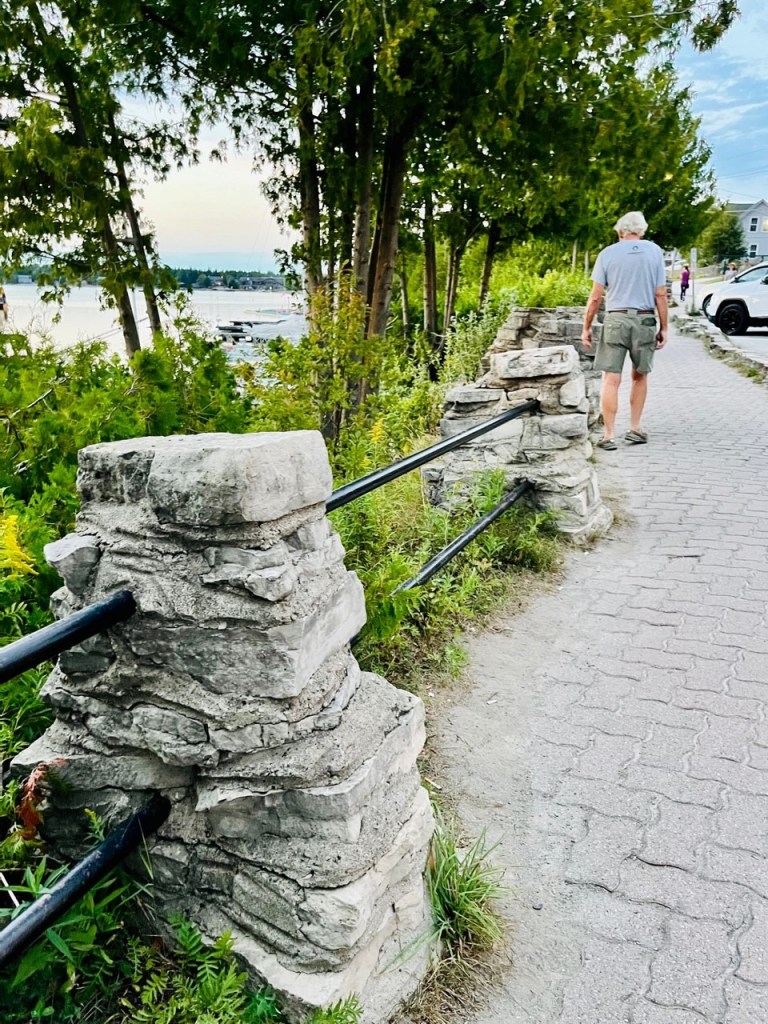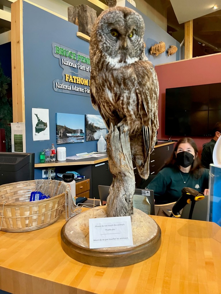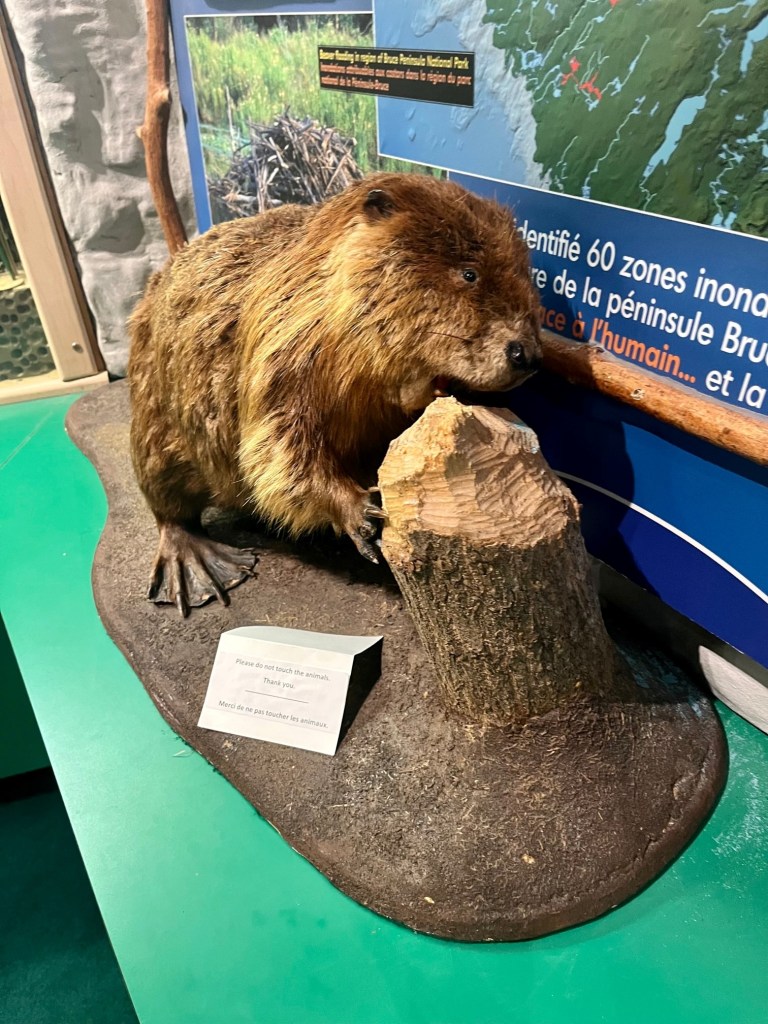 We visited the Park Center for the Bruce Peninsula National Park. We viewed a movie detailing the history and features of the park, and climbed the observation tower. Captain Pat was unaware of the Admiral’s fear of heights. The things you learn about your wife travelling four months straight! I wasn’t expecting the tower to be an open structure with just stairs to climb! It reminded me of camping at Lincoln State Park as a youth, where we would climb the fire tower there. I never liked it!