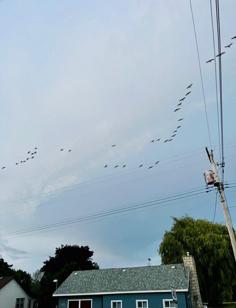 We also saw the Canadian geese take flight. I remarked to Captain Pat “look, the geese are taking their winter journey, flying south!” to which he replied, “Cindy, they are flying to the North.” Good thing he is driving the boat and not me!