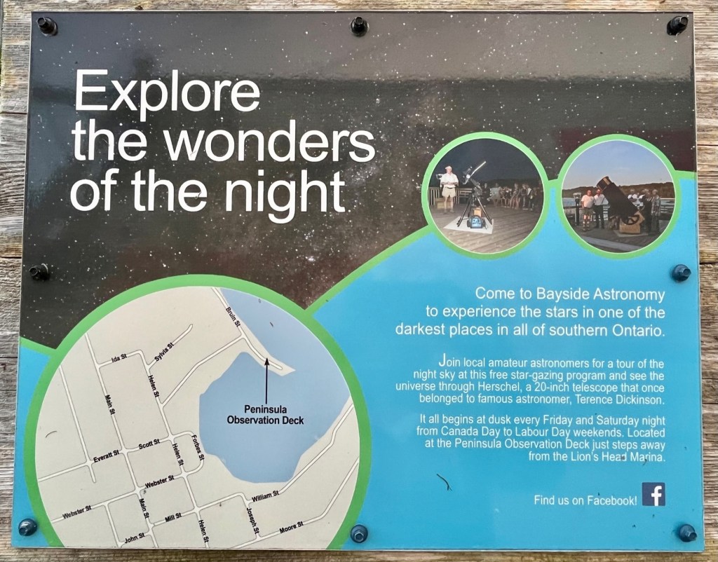 Also featured at this marina are free guided star gazing tours, five days a week, between Canada Day and Labour Day Weekend. You can see planets, faint nebulae and sparkling star clusters.