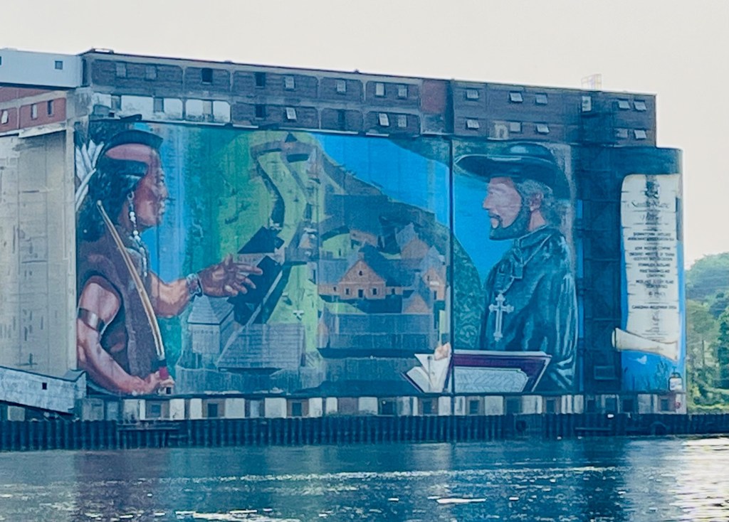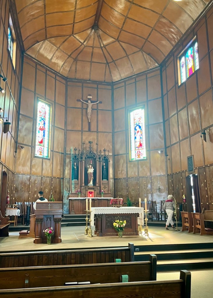 I met Ellie serendipitously last year. I was wandering around aimlessly in Penetanguishene, just killing time, not having the best of days. On a whim I decided to go to noon Mass at St. Anne’s church. The church is huge, and I couldn’t find the right entrance. Ellie saw me and led me to the right door. We struck up a friendship. Ellie later gave me a book on the Martyrs’ Shrine and promised a tour once we returned to Canada in June.