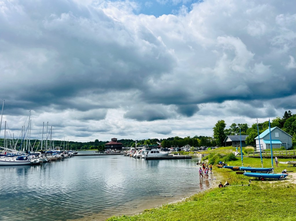 Young children and teens attend a sailing school on the beach. Canadian Yacht Charters is on site and offers power and sail charters and water sport rentals.