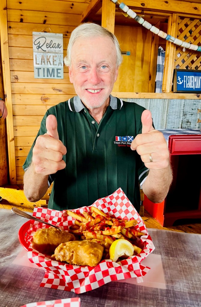 It’s always a good night when we eat out and the Admiral doesn’t have to cook in the galley. The fish and chips here are the best we’ve ever had, and we even have leftovers to take home.
