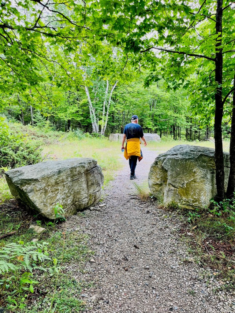 The rain subsides and we enjoy a walk around the water, by the Inn, up the road, and into the woods. We eventually end up at the lookout point.