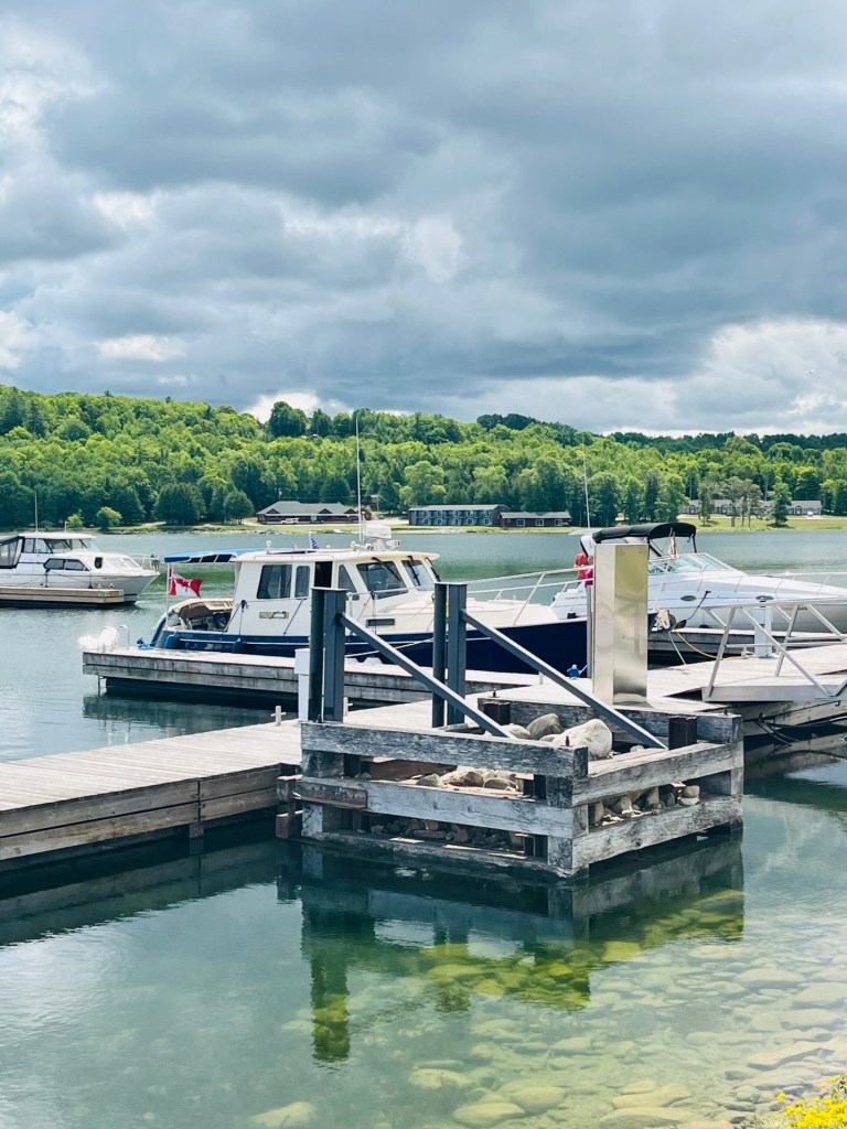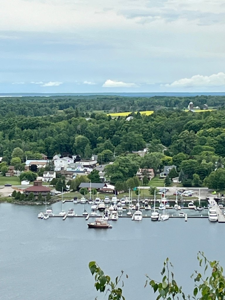 We arrive Gore Bay July 18 and plan to stay three nights. What a great stop for transient boaters. It is at the end of a V-shaped, two-mile deep inlet set into the north shore of Manitoulin Island. The marina can accommodate 157 boats at the floating finger docks.