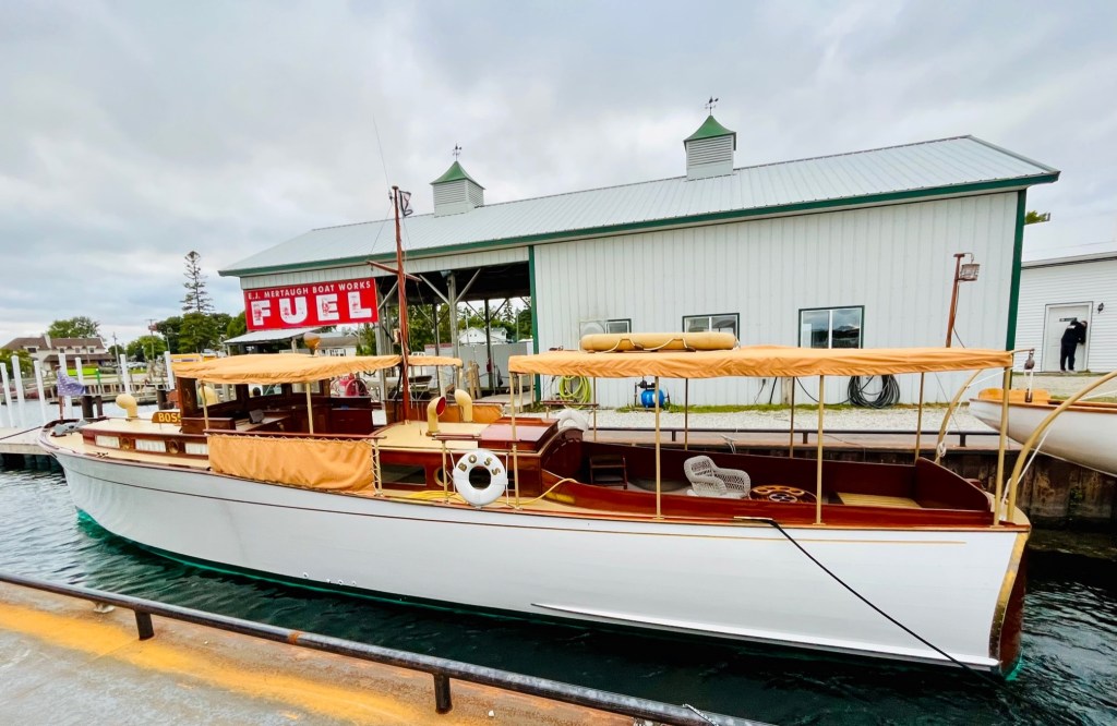 Our visit to Hessel is magical and memorable. We dock Sunshine in the marina slip David and Charlotte Gray graciously donated to us for the weekend. We met them in Sault Ste. Marie. The focal point of the marina is the Mertaugh Boat Works facility. Mertaugh had the first Chris-Craft franchise in the United States and continues to thrive.