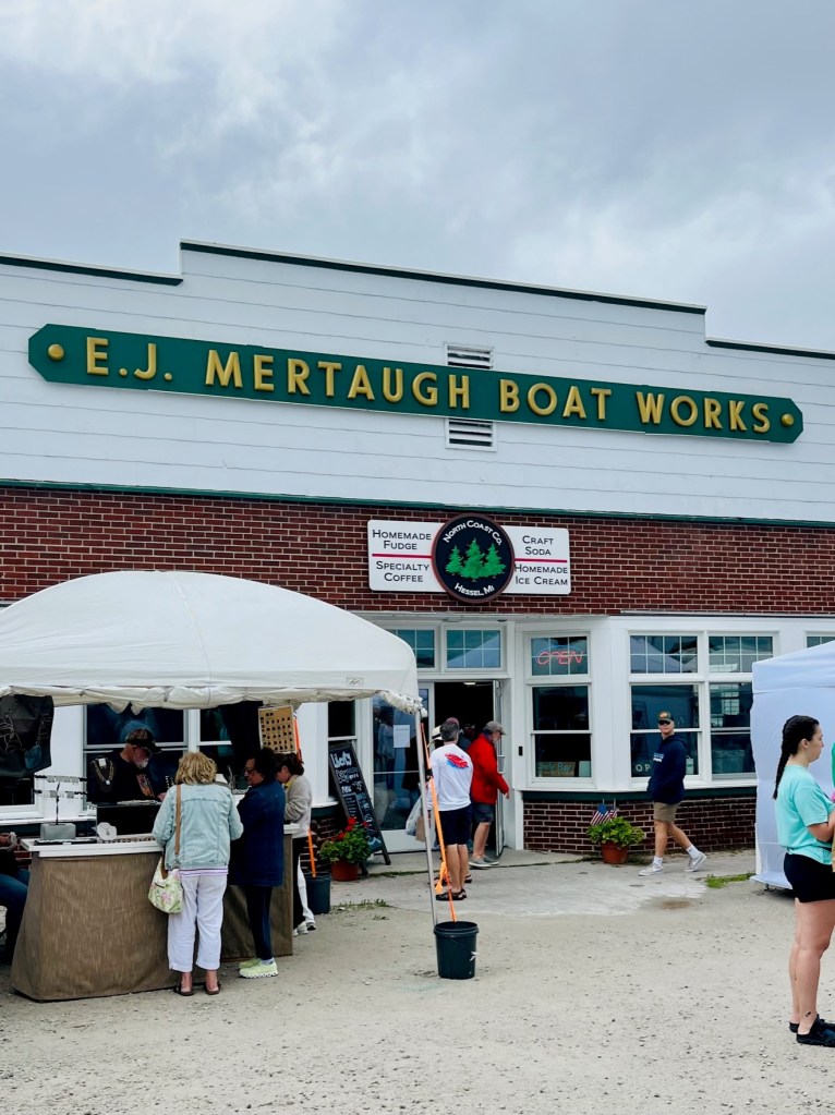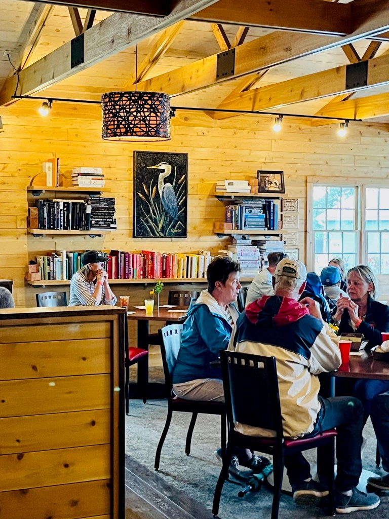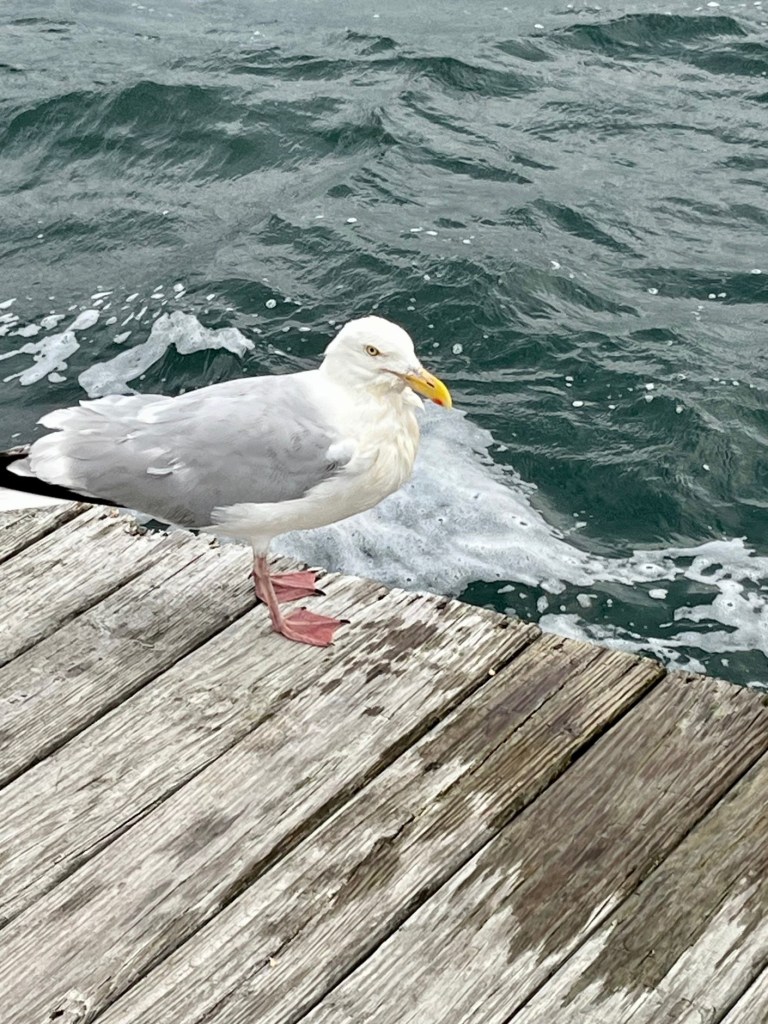 What fascinates me about the Mertaugh facility is the coffee shop inside their building, open 8 to 8 daily! They serve the best Liberty Bay “breakfast” cookies, fudge, cafe miel (a latte with cinnamon and honey) and ice cream! Each morning we see the young workers boat up to the docks on their jet skis and smaller Boston Whalers ready to report to their summer job.
