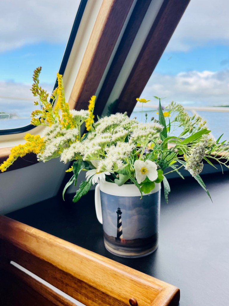 I bring home some wildflowers for an arrangement. It’s nice to have flowers on the boat.