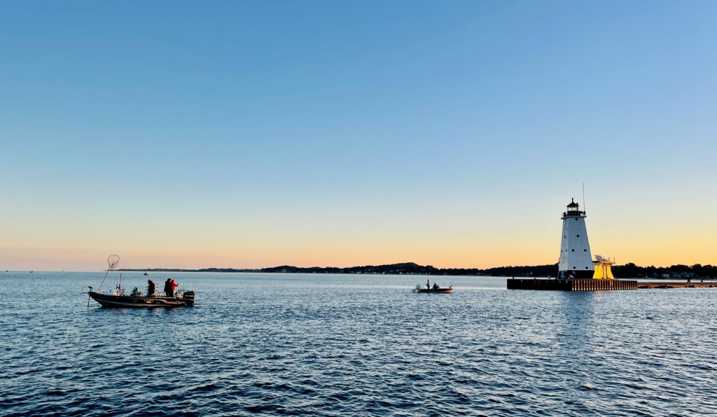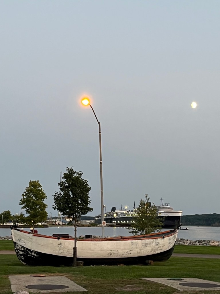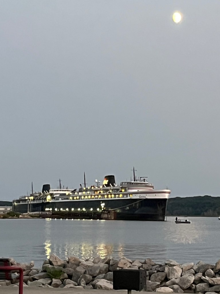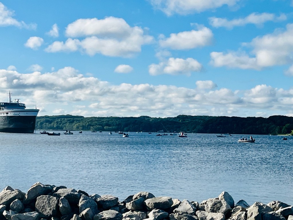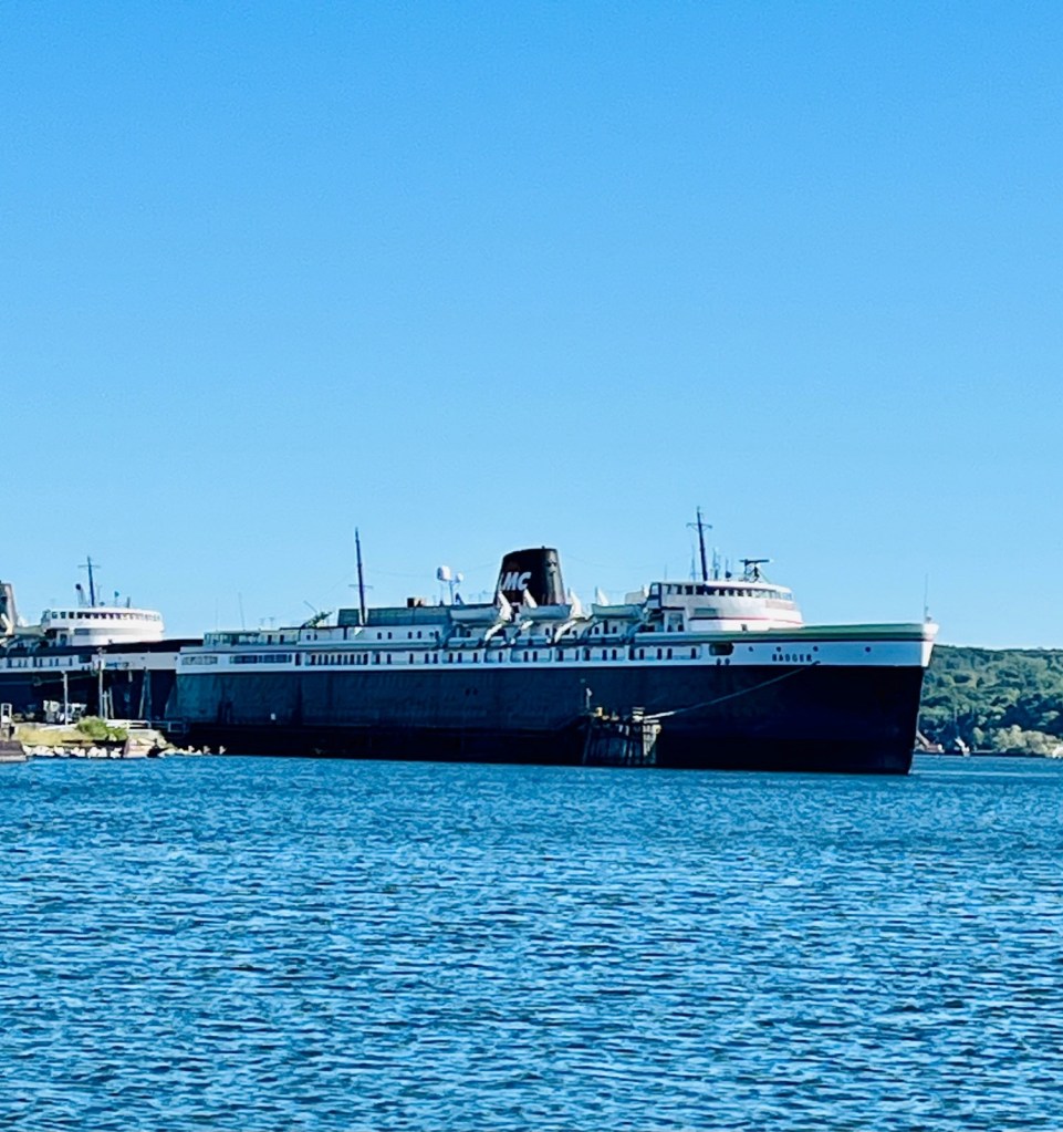 The first thing you notice at the Ludington marina is the S.S. Badger, a ferry that crosses Lake Michigan, taking passengers and vehicles from Ludington to Wisconsin. The Badger is not in service as of August this year because of unexpected damage to its ramp system, and will not resume service this season.
