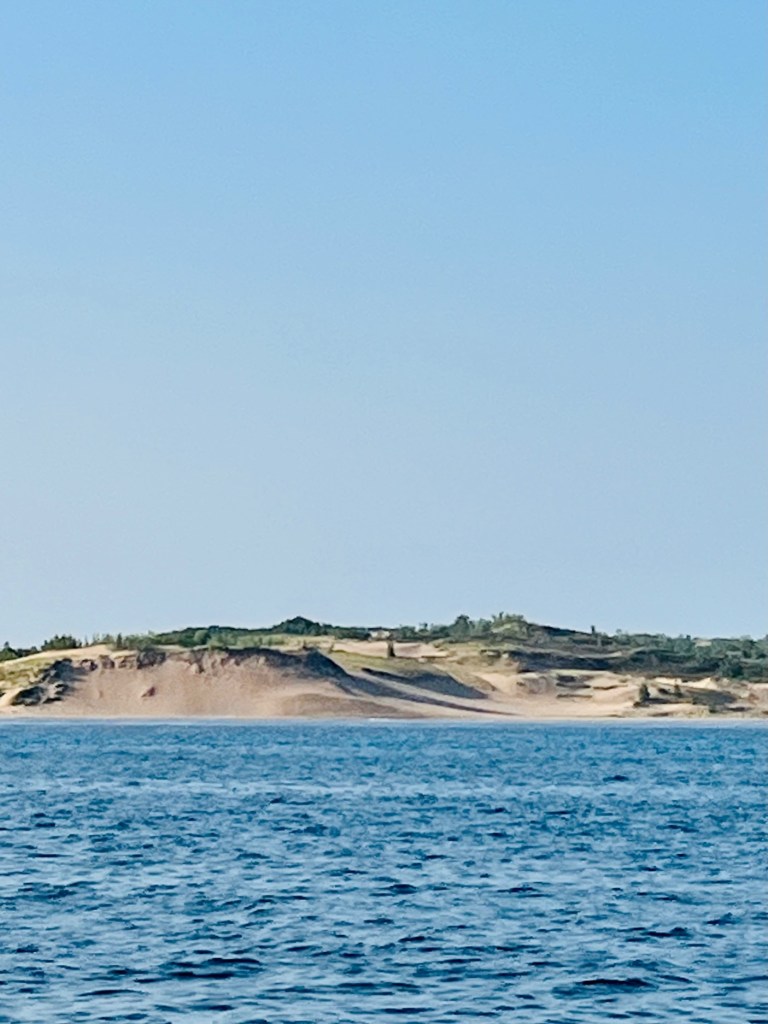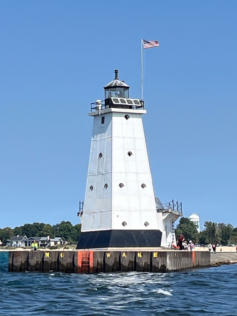 The two texts above – from Kathleen, Pat’s sister and Bill, her husband – aptly describe our voyage from Leland, Michigan to Frankfort, Michigan. We finally get a decent weather window, after five days in Leland, to head to Frankfort. We make such good time, we decide to skip Frankfort and go another 20 miles or so to Ludington.