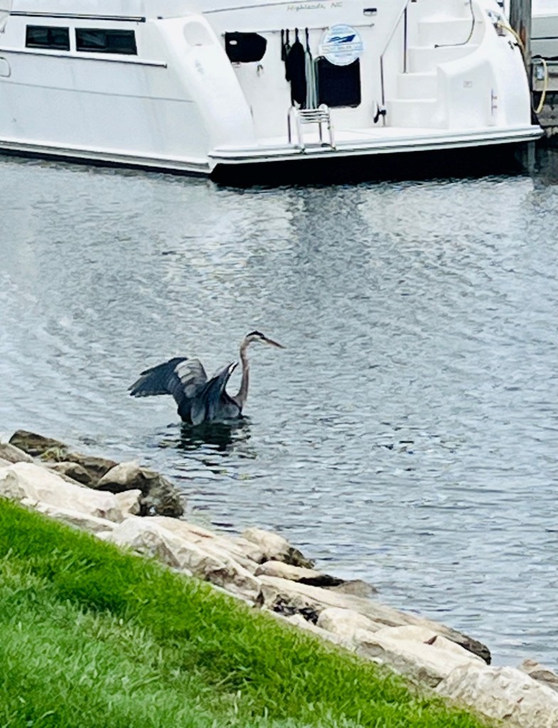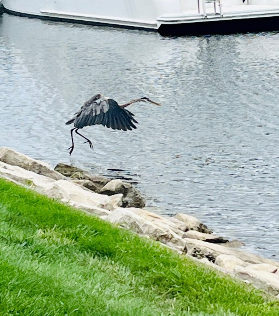 We spot a helicopter hovering close to the lake, near the fishing boats. There was a fishing tournament over the weekend at Frankfort. We think that’s the reason for the commotion.