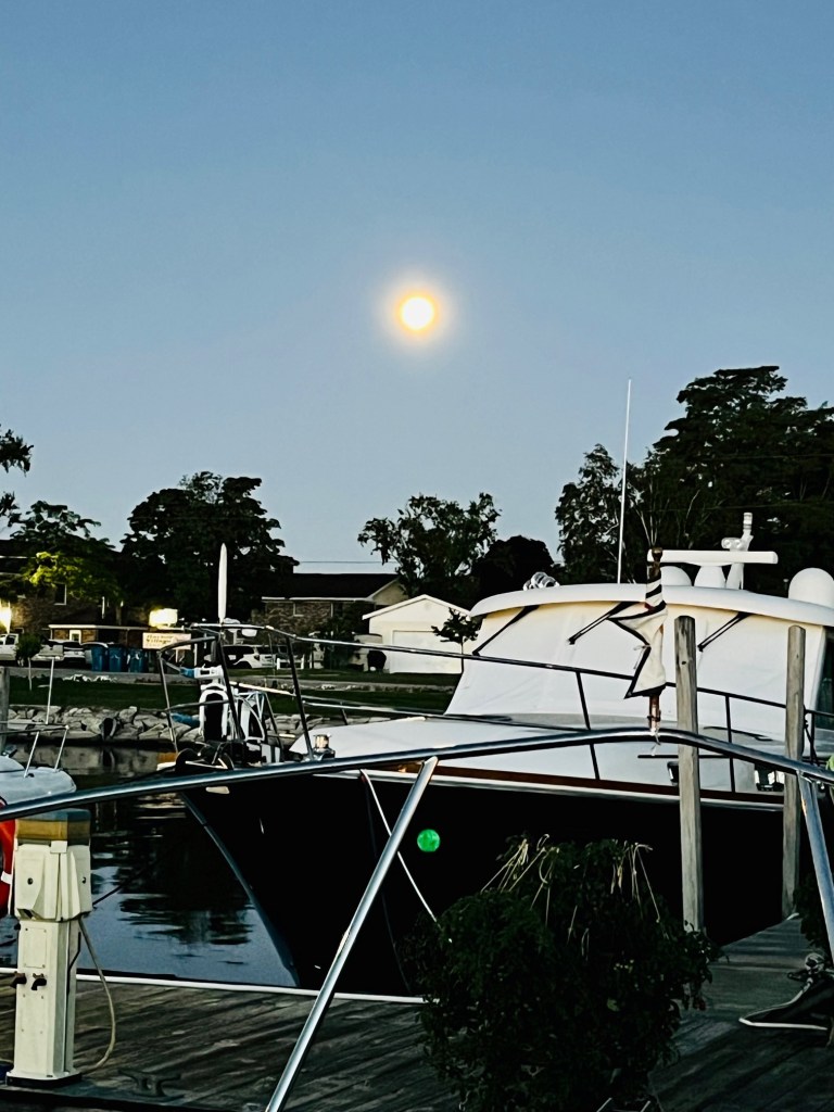 The dock hands are the usual teenagers who tell us about their school and sports, etc. ‘Reece’ even gives us a restaurant tip – Keeper’s Fish Shack – where her sister works. We do eat dinner there and it’s the best perch ever. Nothing fancy, just good food. It’s a family owned business – they live winters in the Keys.