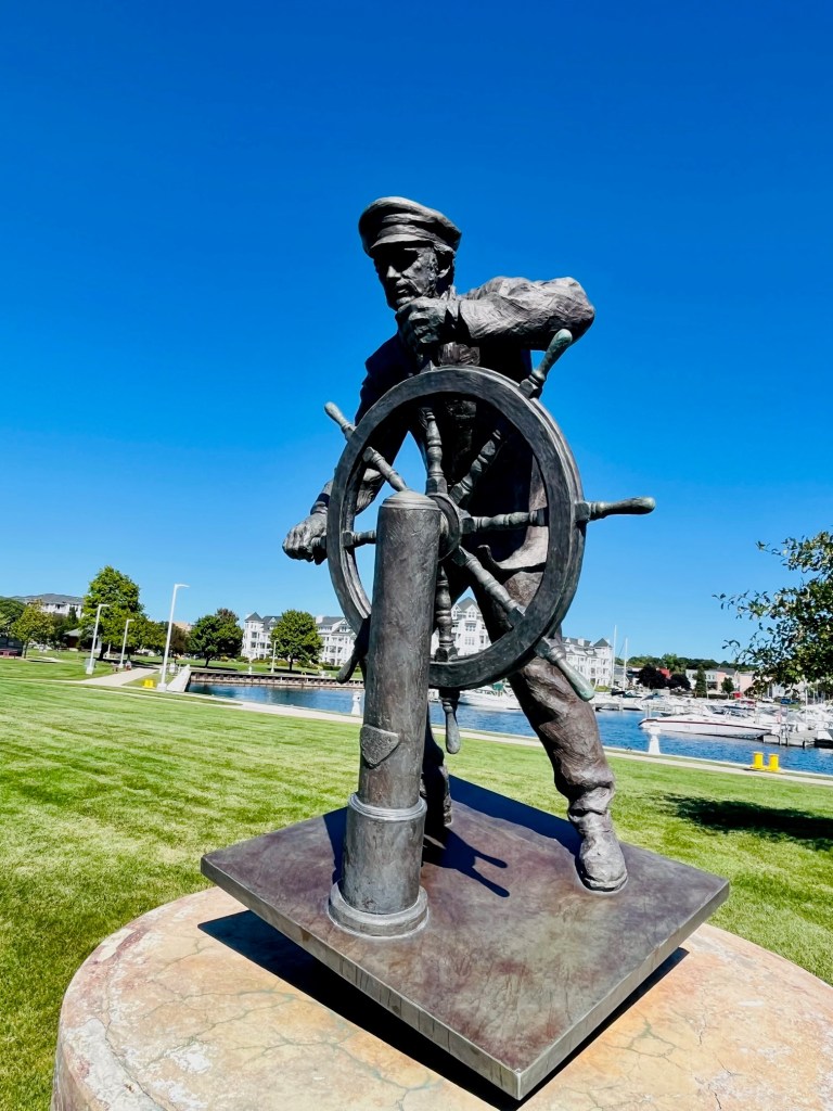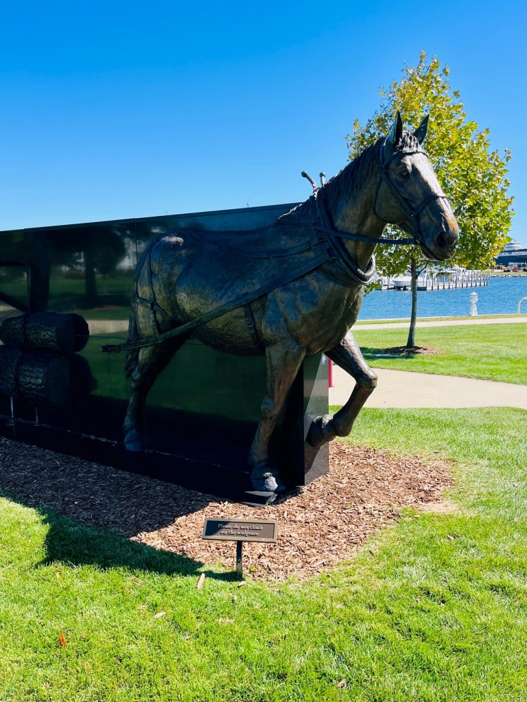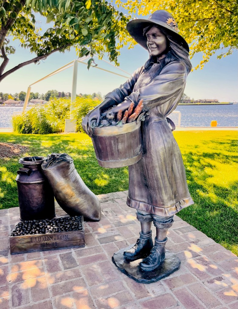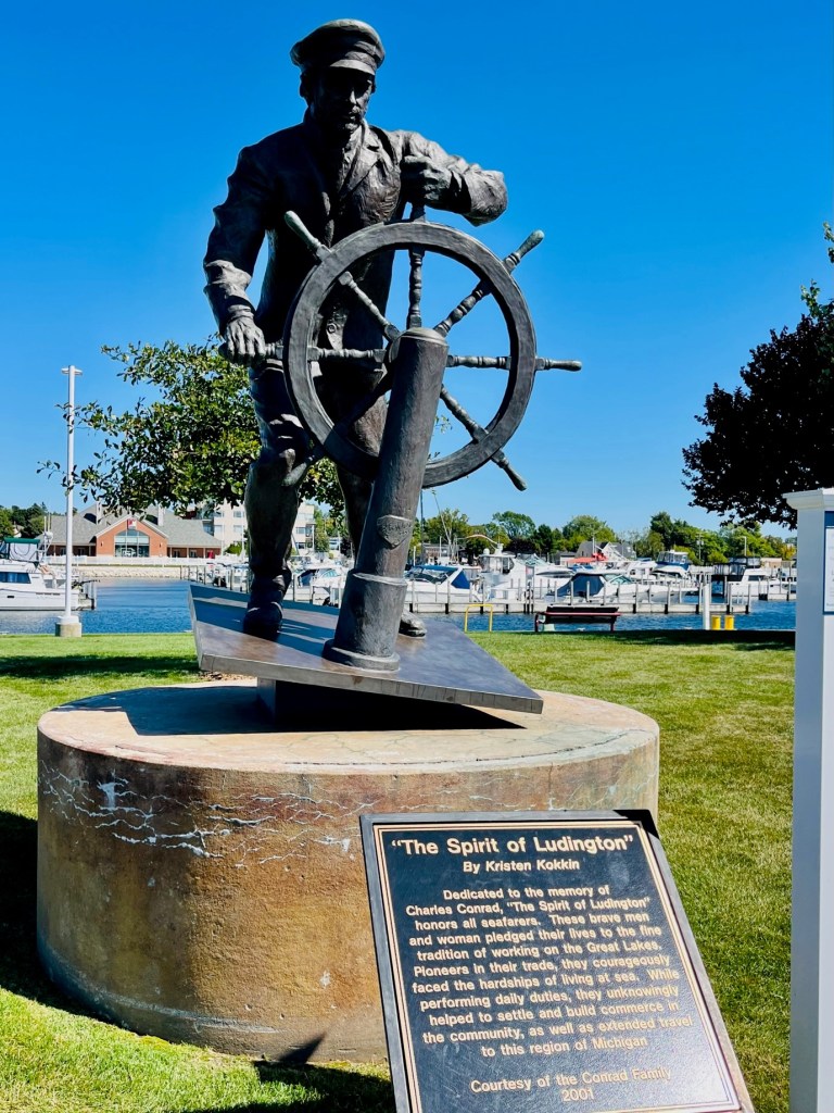 The state of Michigan does a terrific job with the waterfront state parks and memorials in the small towns we visit. Ludington’s lakeside park has metal statues with historical explanations, and a playground. What a fast and pleasant to learn the history of the town.