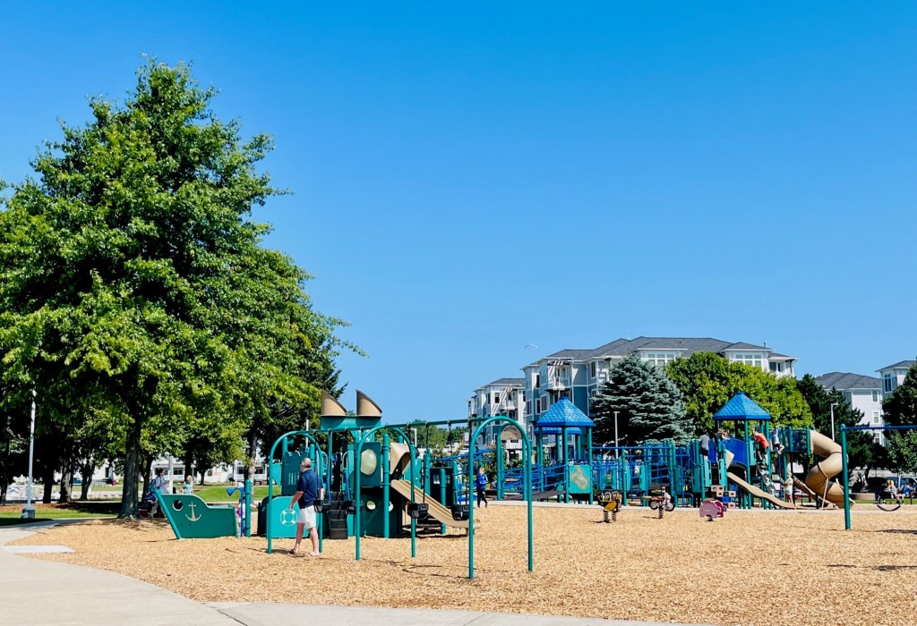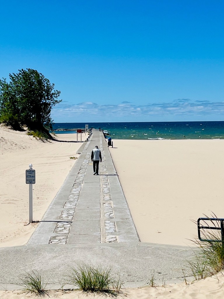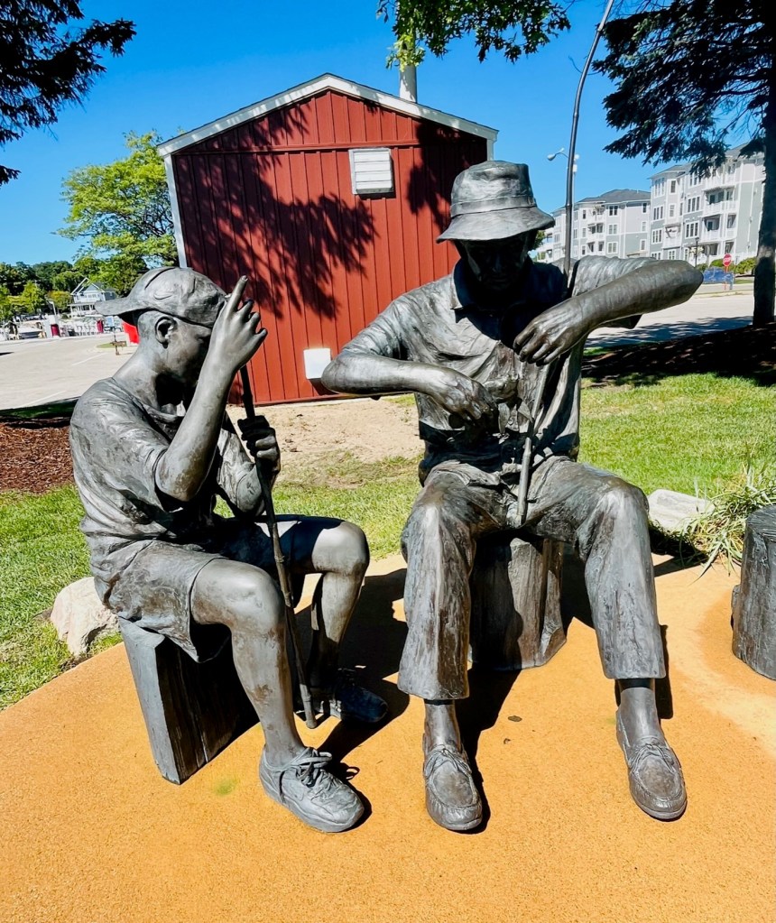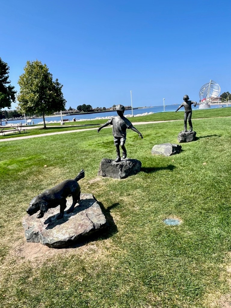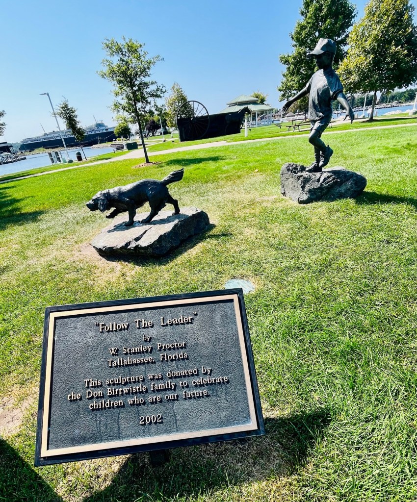 The state of Michigan does a terrific job with the waterfront state parks and memorials in the small towns we visit. Ludington’s lakeside park has metal statues with historical explanations, and a playground. What a fast and pleasant to learn the history of the town.
