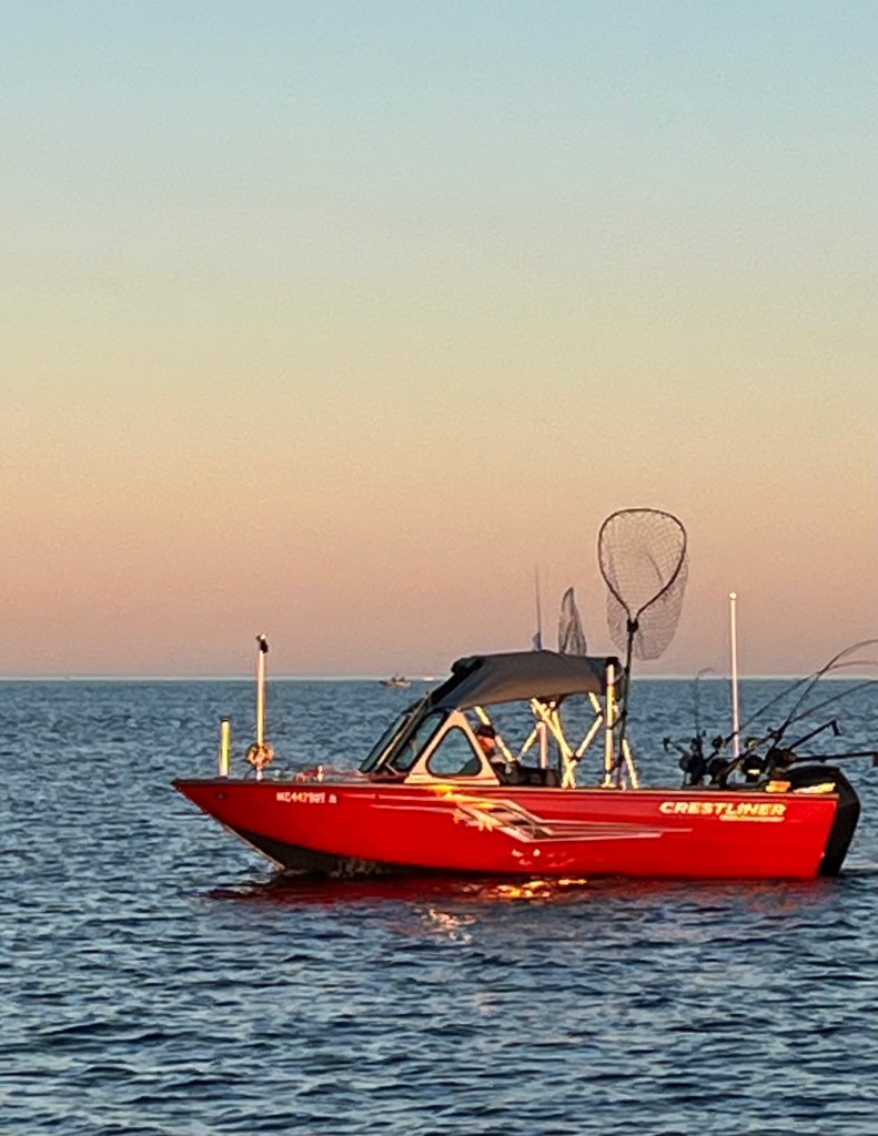 We are amazed at the number of fishing boats in the water surrounding Badger. They stay way into the evening, even after dark.