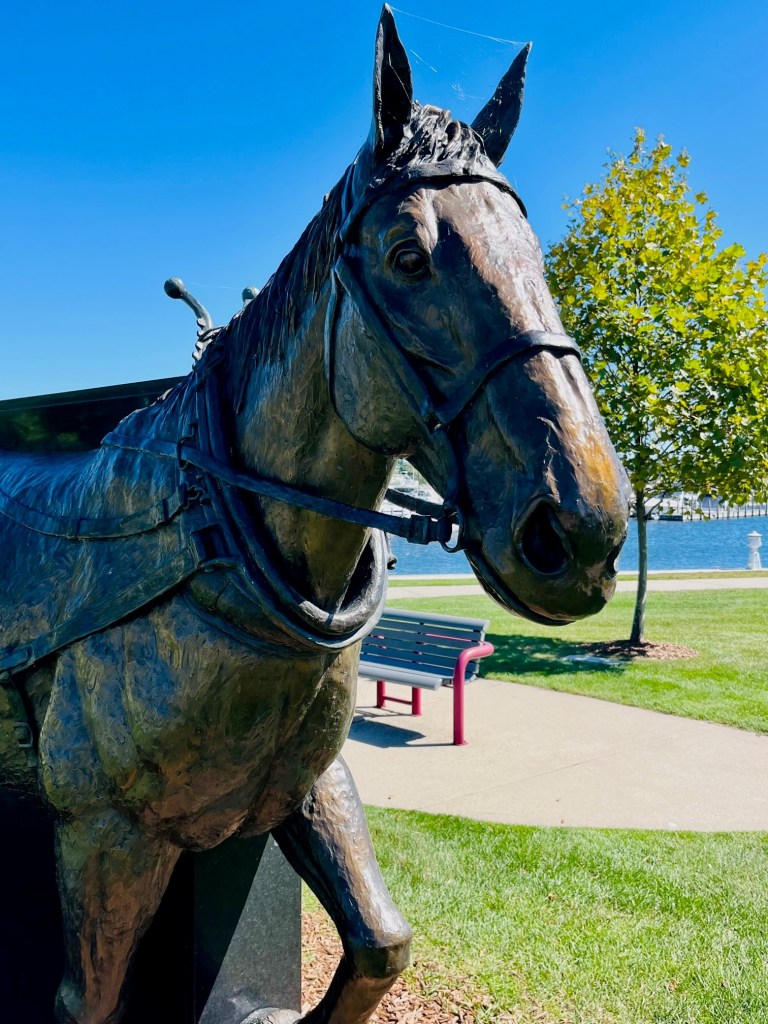 I’m especially impressed with two of the memorial statues. One pays tribute to the farmers and their hard work. The other is a horse-drawn carriage that edifies that in addition to being majestic and fast creatures, horses have provided countless services to Americans.
