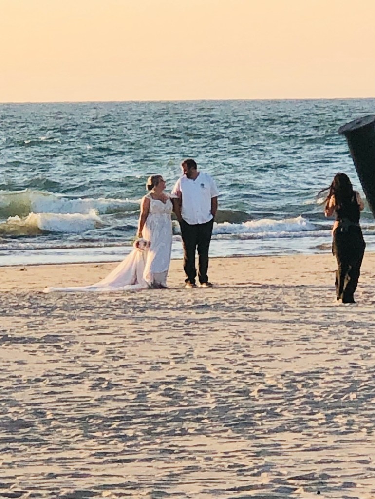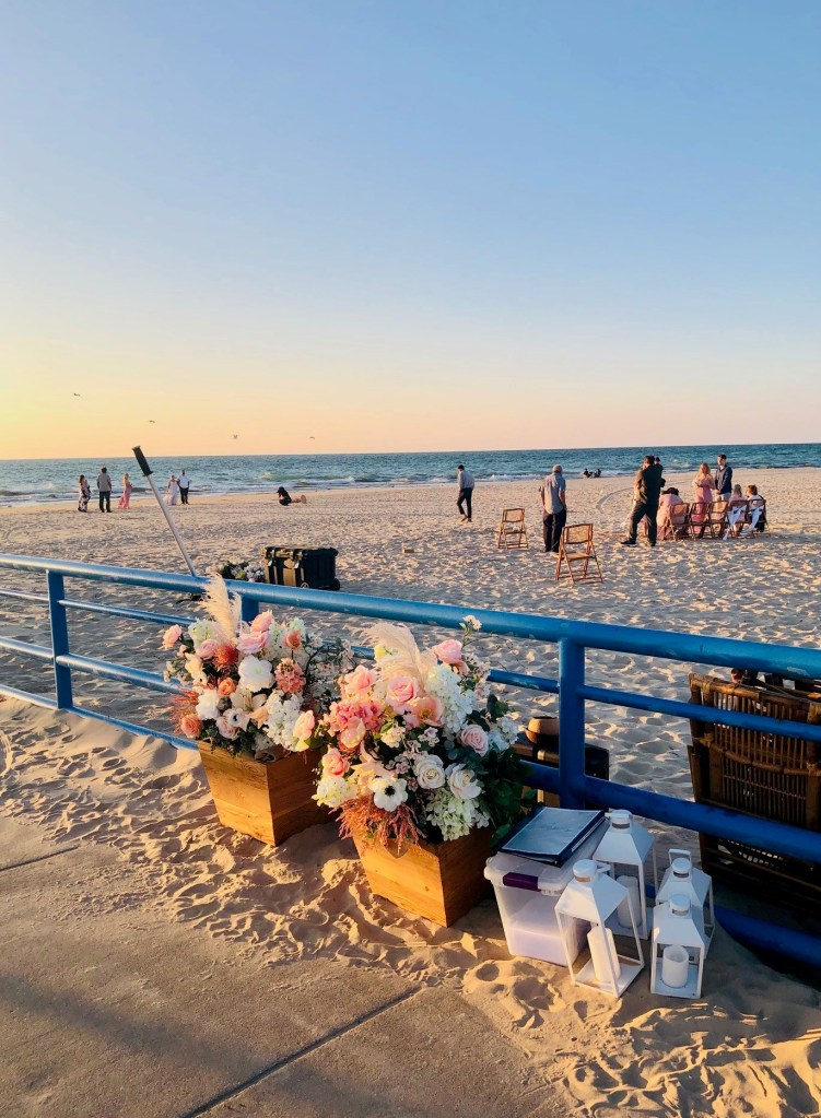What a backdrop with the glimmering sunset and majestic waves. One evening there is a wedding.