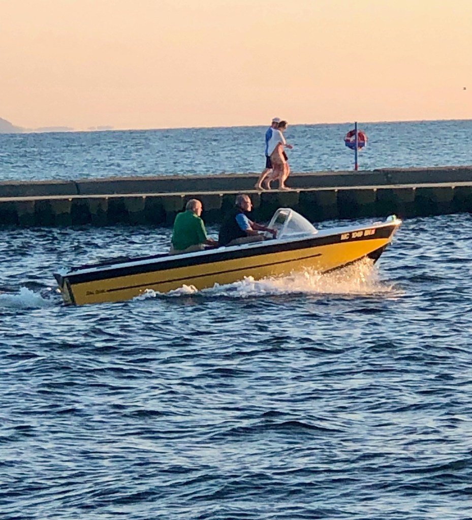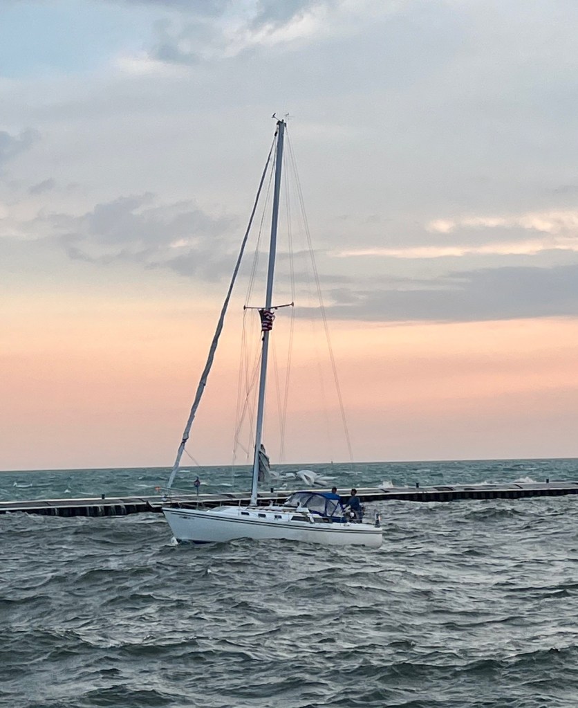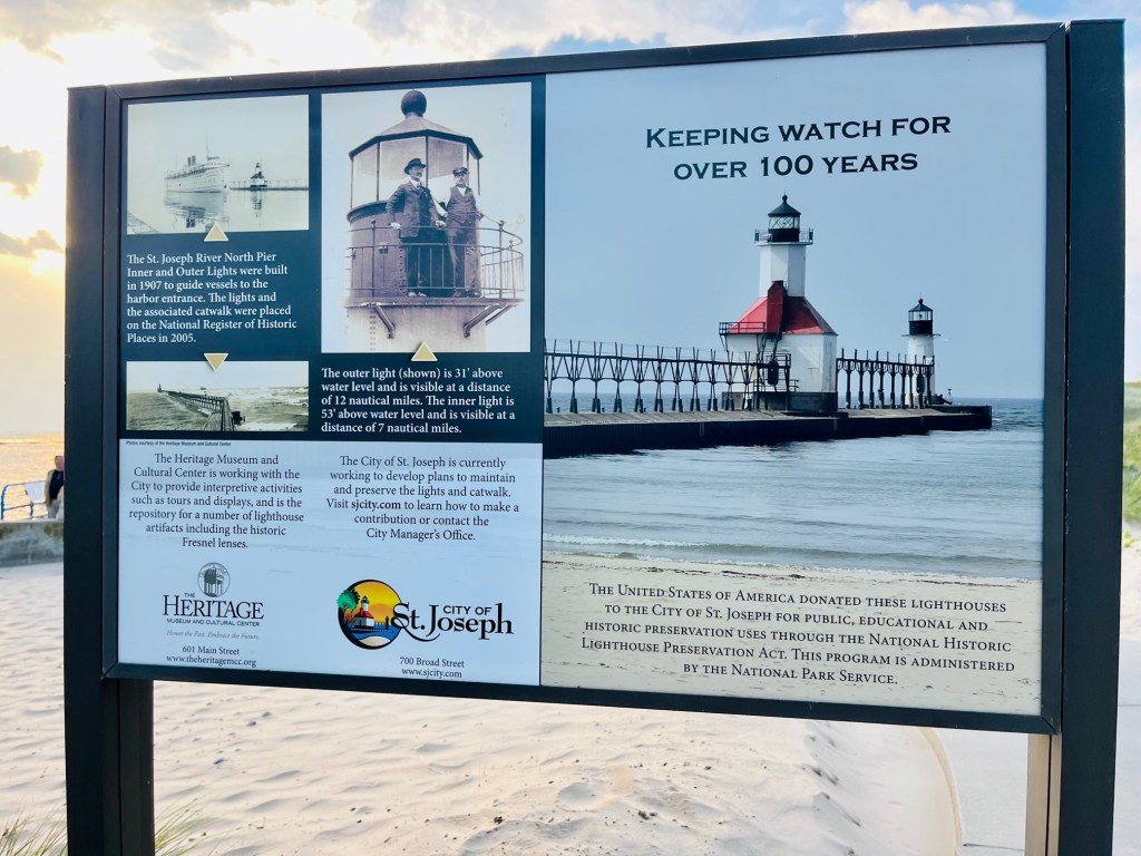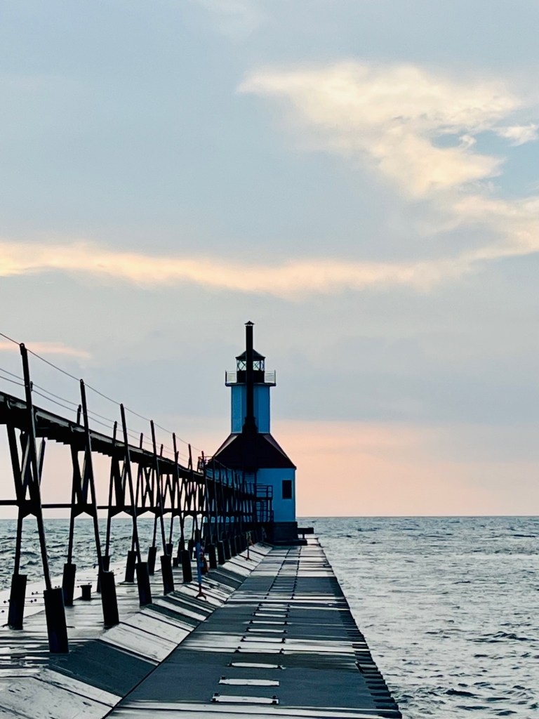 The marina manager warns us of the dangers of walking the lighthouse boardwalk. Many non-vigilant visitors have underestimated the dangers of Lake Michigan.
