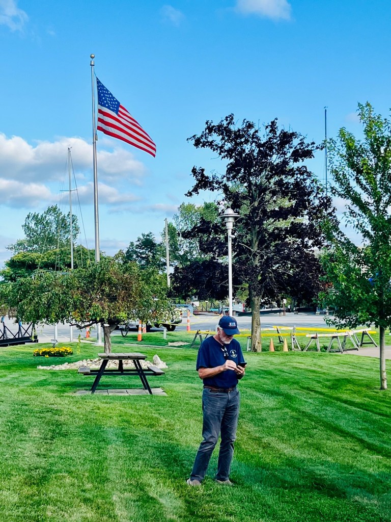 Most nights the Admiral joins him. These are memorable evenings. We always peruse the boats on the docks. This is a must for Captain Pat.