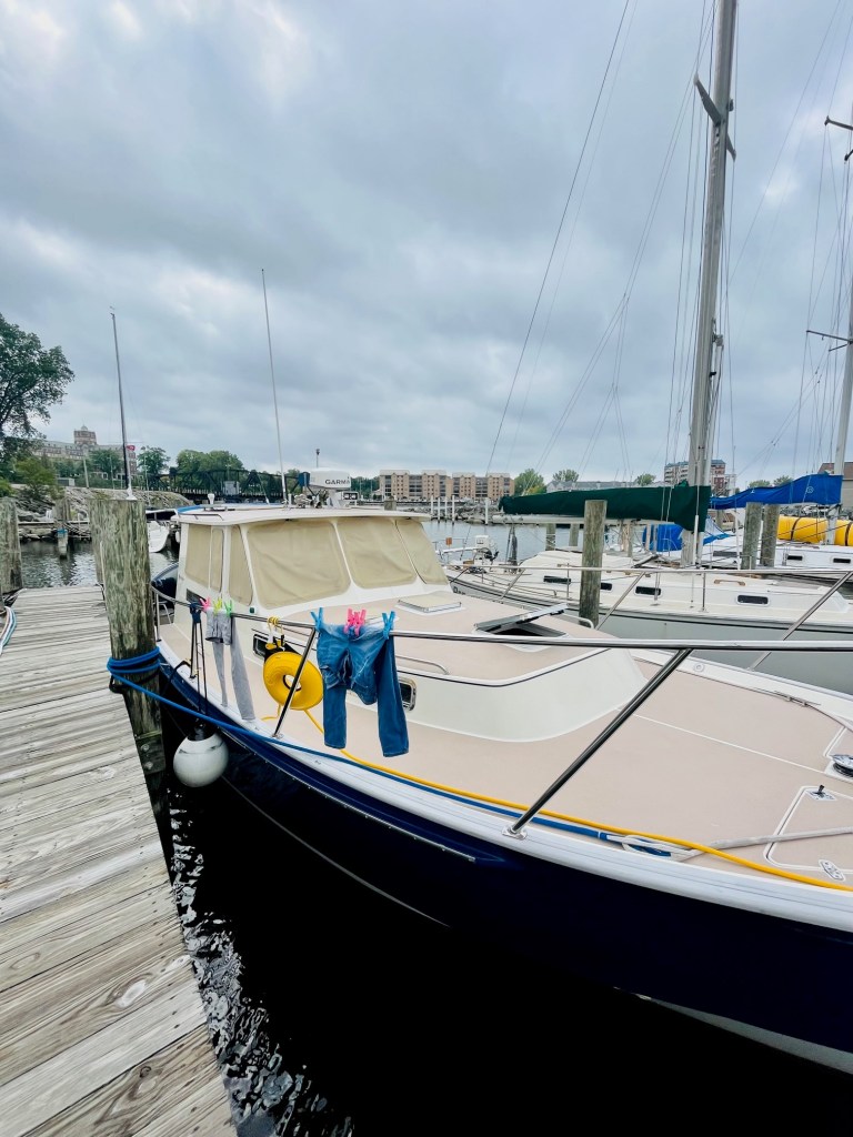 We arrive and to my surprise, there is our friend Tracy from the Looper boat “Done Saving” at the dock to help us tie up. When Tracy heard on the radio we were coming in, she headed over to our slip to help. Boaters, especially Loopers, are so generous, always willing to lend a helping hand.