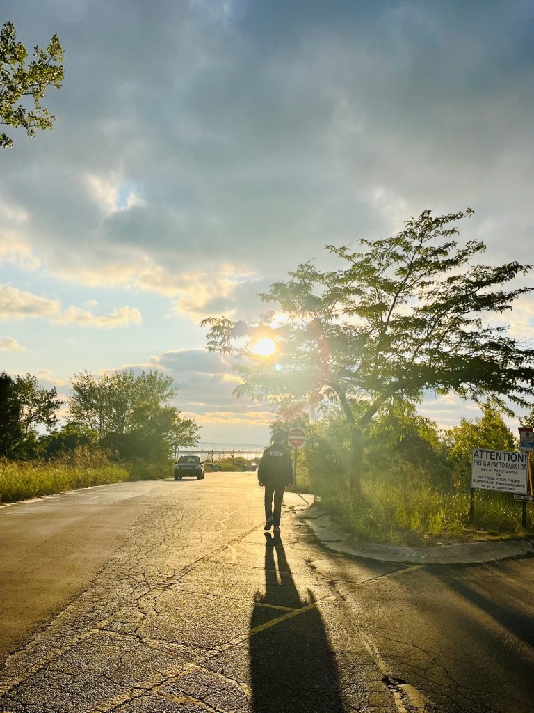 Each night Captain Pat walks to the nearby park with a walking pier to the lighthouse and a beach.