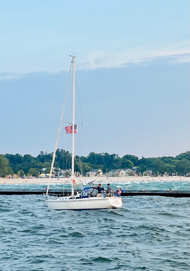 That same evening, we witness a sailboat attempting to enter the inlet. We watch it from afar, wondering if it is headed for the inlet. It is.