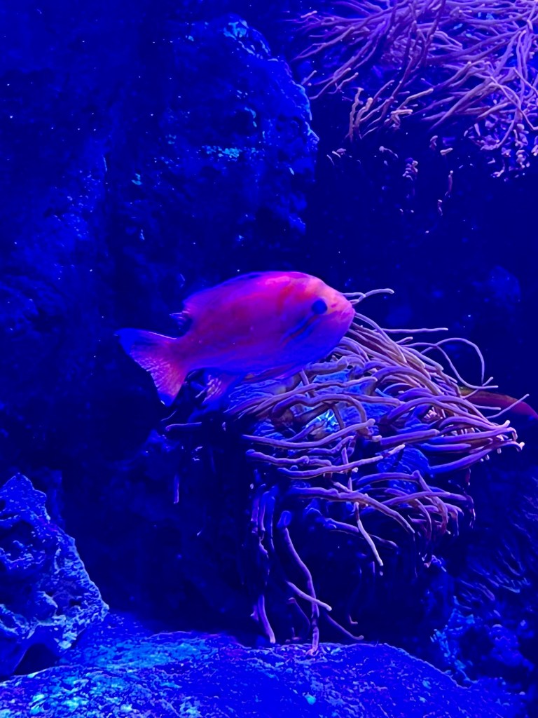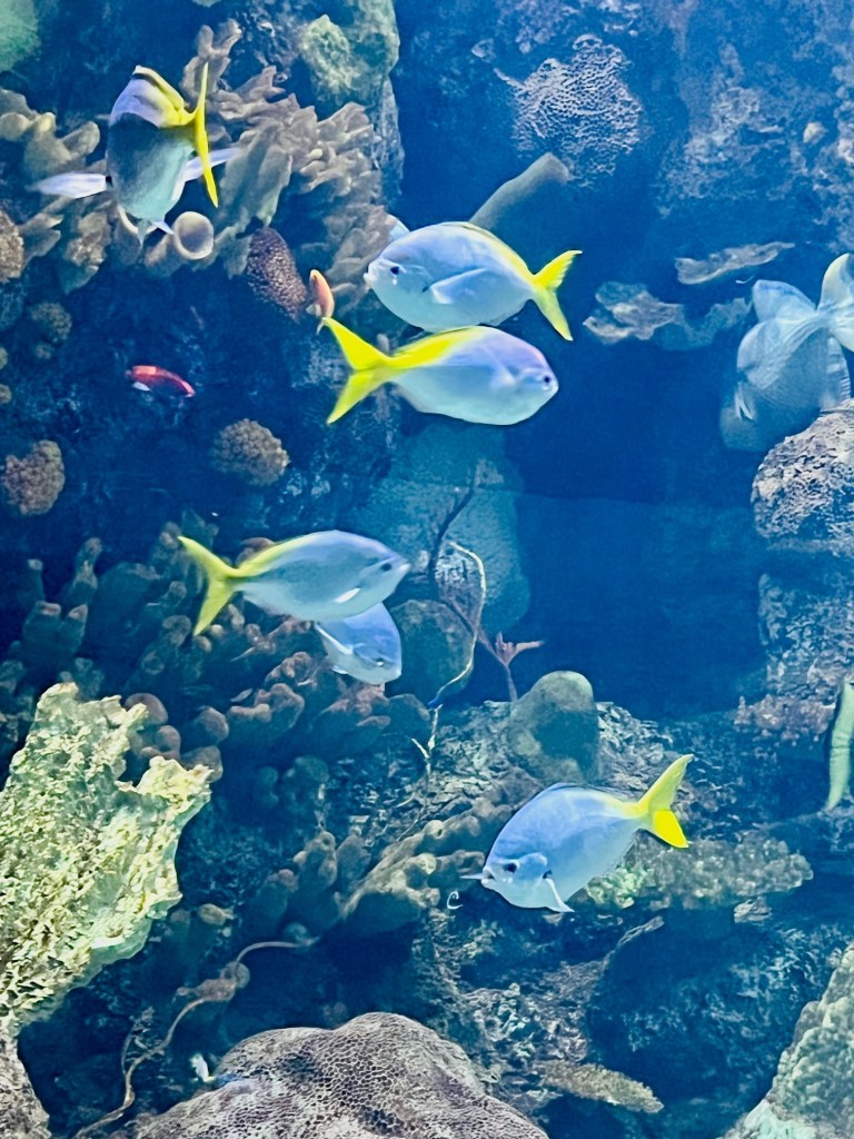 We enter the aquarium, visit the gift shop, and immediately see several exhibit rooms from different global regions – Waters of the World; Amazon Rising; and Wild Reef.
