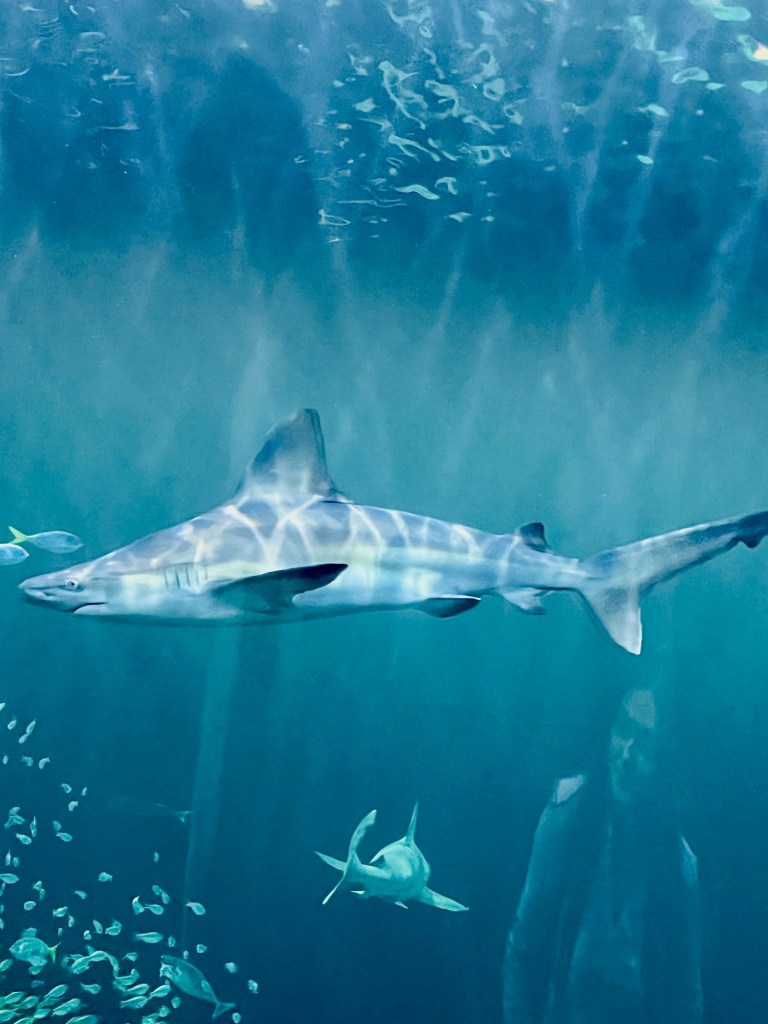 The shark exhibit is very popular. A lot of people snap their photo with the sharks.