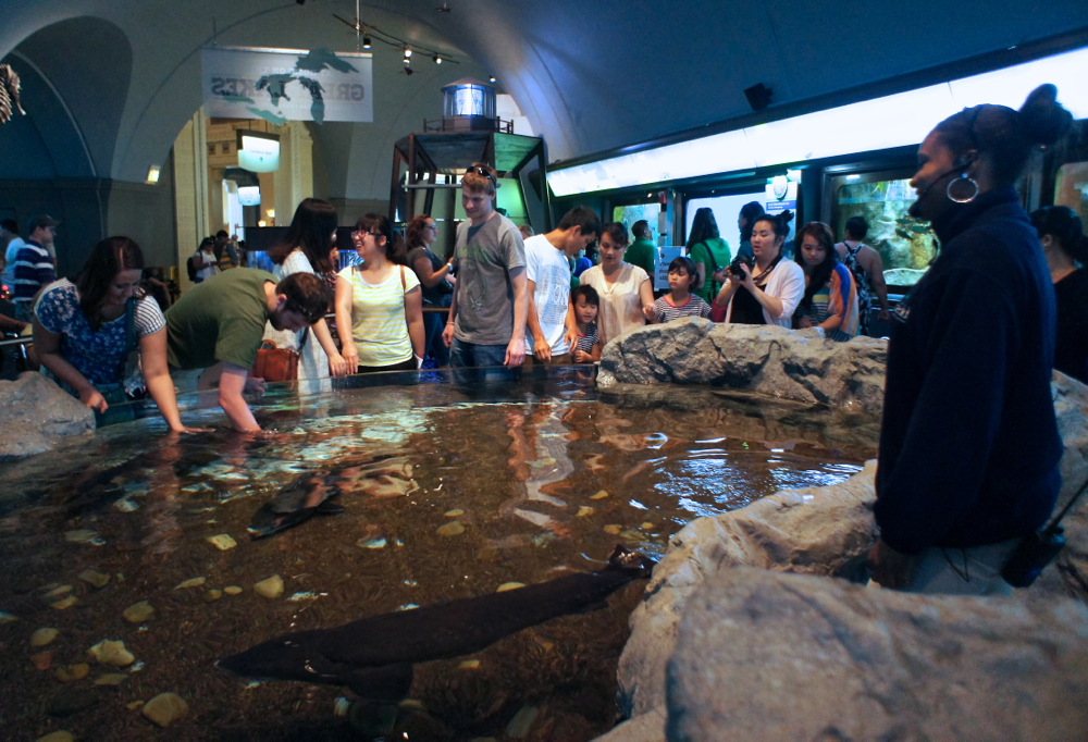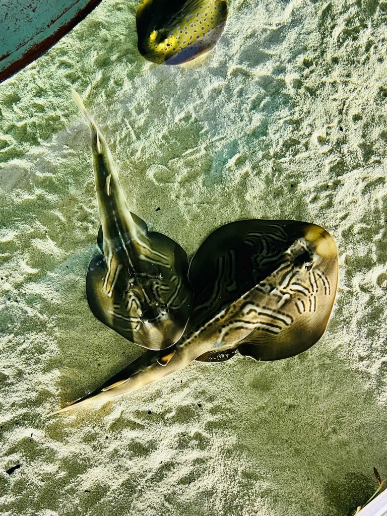 Our final aquarium activity for the day is the “Stingray Touch.” Located on the aquarium’s South Terrace, this exhibit allows guests to touch cownose rays as they swim around their 20,000 US gallons (76,000 L.)
