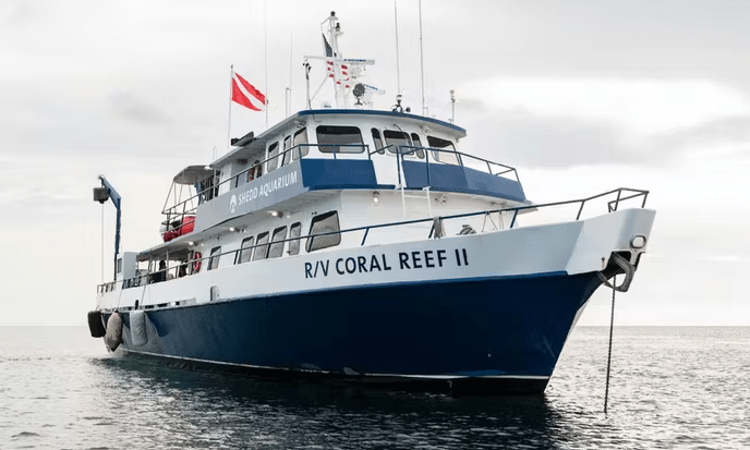 In 1985, this boat was replaced with the aquarium’s current vessel, the Coral Reef II. The Coral Reef II is indispensable to the aquarium’s conservation research and education programs. The 80-foot custom-built boat serves as a mobile basecamp and laboratory for field researchers and is the jumping-off point to Caribbean reefs for budding college and high school marine biologists.