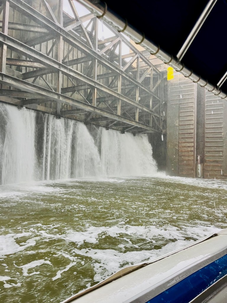 As luck would have it, the lock departure date for all flotillas was pushed out twice. The first delay of four days was because the commercial barges needed to go through, and the engineers wanted to ensure the locks were working properly. The second delay of two days was because of weather. Who could have predicted these delays?