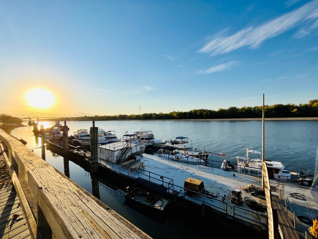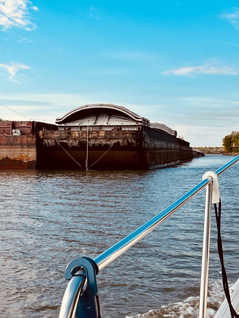 The next morning, we follow Frank and Mona on Summer Fling and another boat down to the Logsdon Tug Service, located in Beardstown. Some Loopers are stopping overnight at Mel’s Diner, near Peoria. We decide to add a few more miles to our day and make it to Logsdon Tug Service.