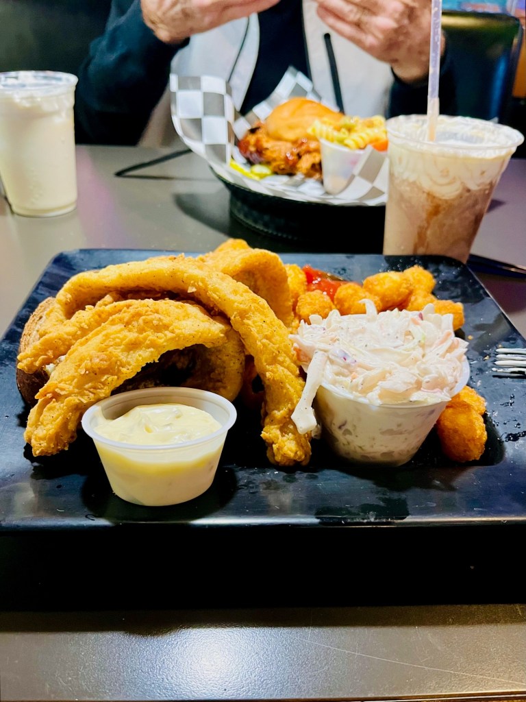The portions are huge – we leave with plenty for tomorrow night’s dinner. The milk shakes live up to their reputation! Just like a New England frappe – it requires a spoon.